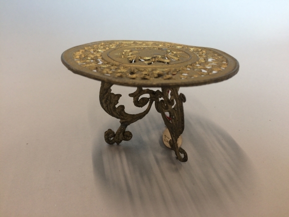 Tafel, onderdeel van twee vergulde tinnen stoelen me...