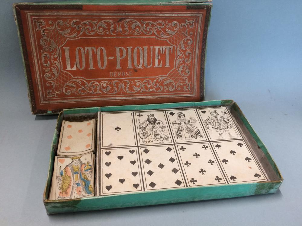 Spel genaamd Kinkhorenspel in eikenhouten doos
