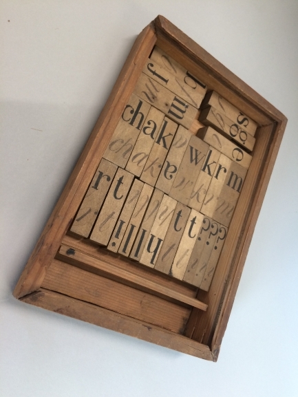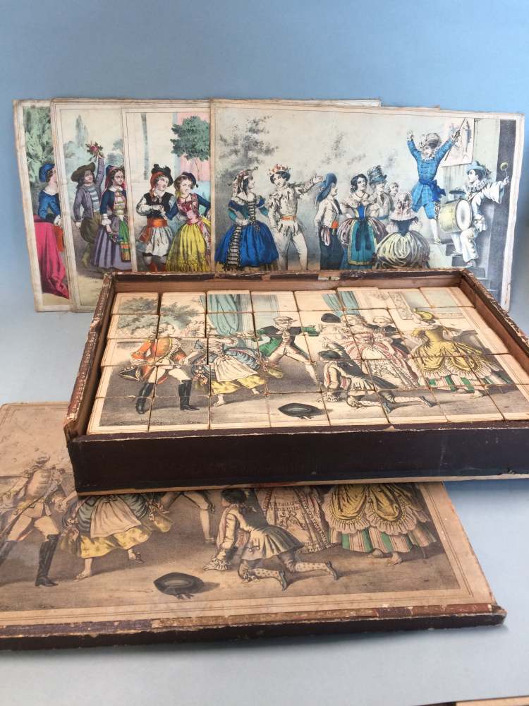 19e eeuwse houten blokkendoos met 40 blokken met in ...