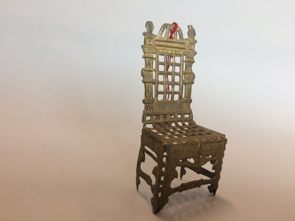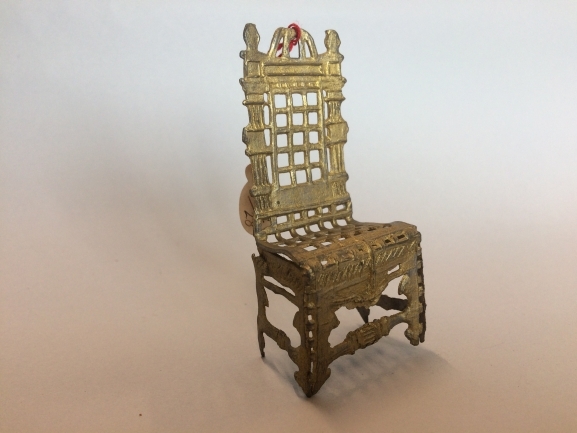 Stoel, onderdeel van twee vergulde tinnen stoelen me...