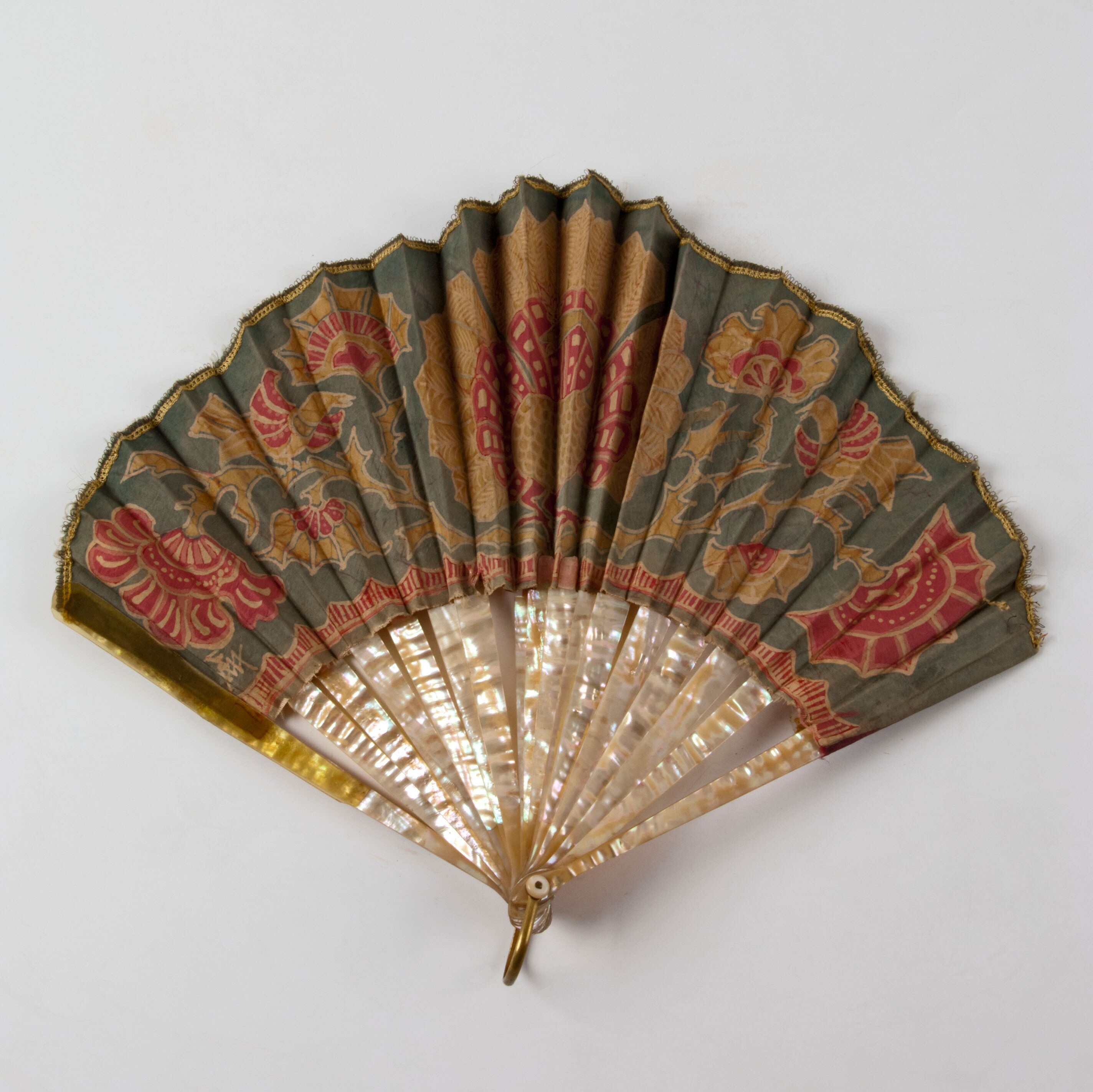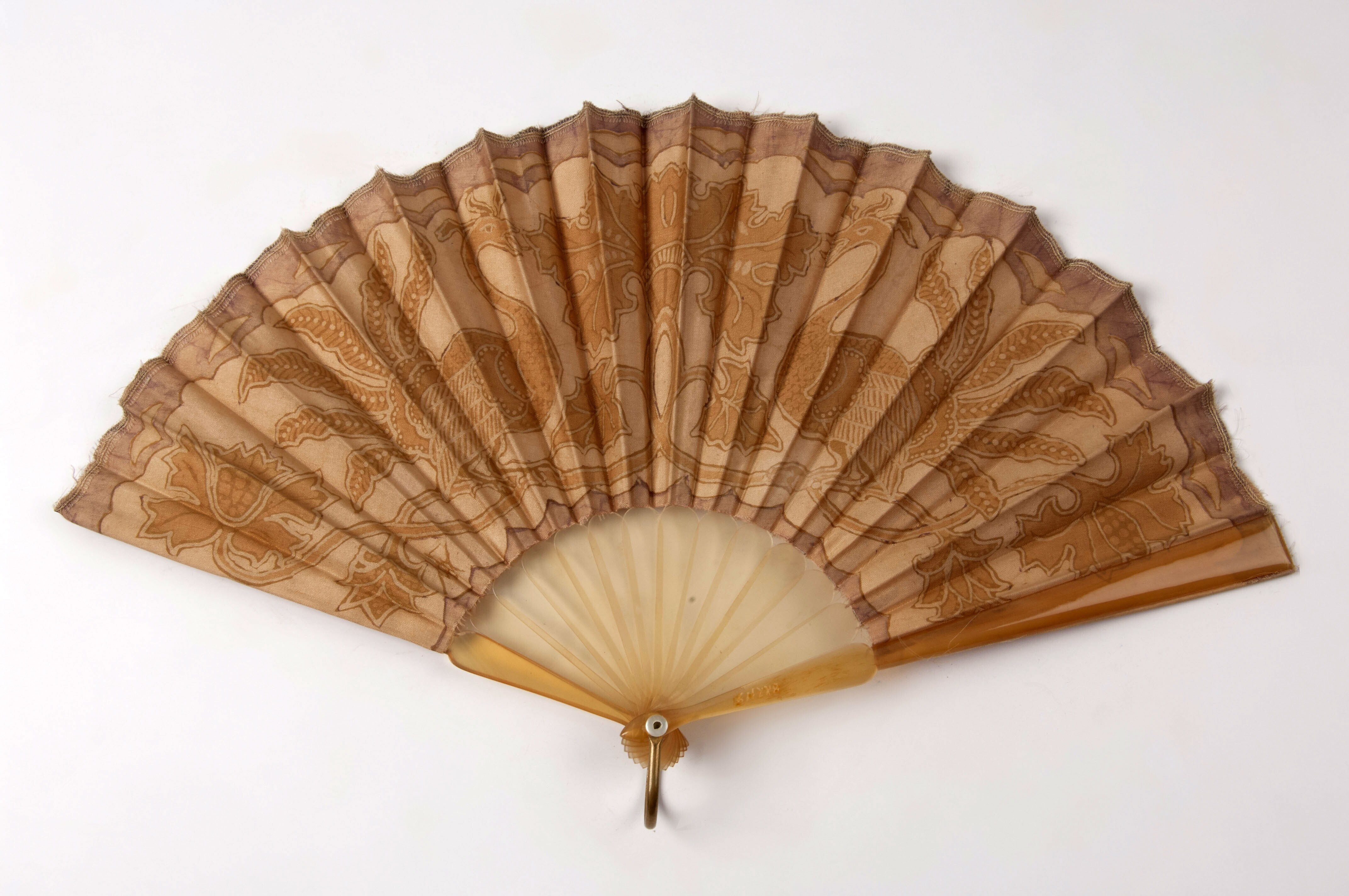 Op zijde gebatikte waaier in garnituur van namaak pa...