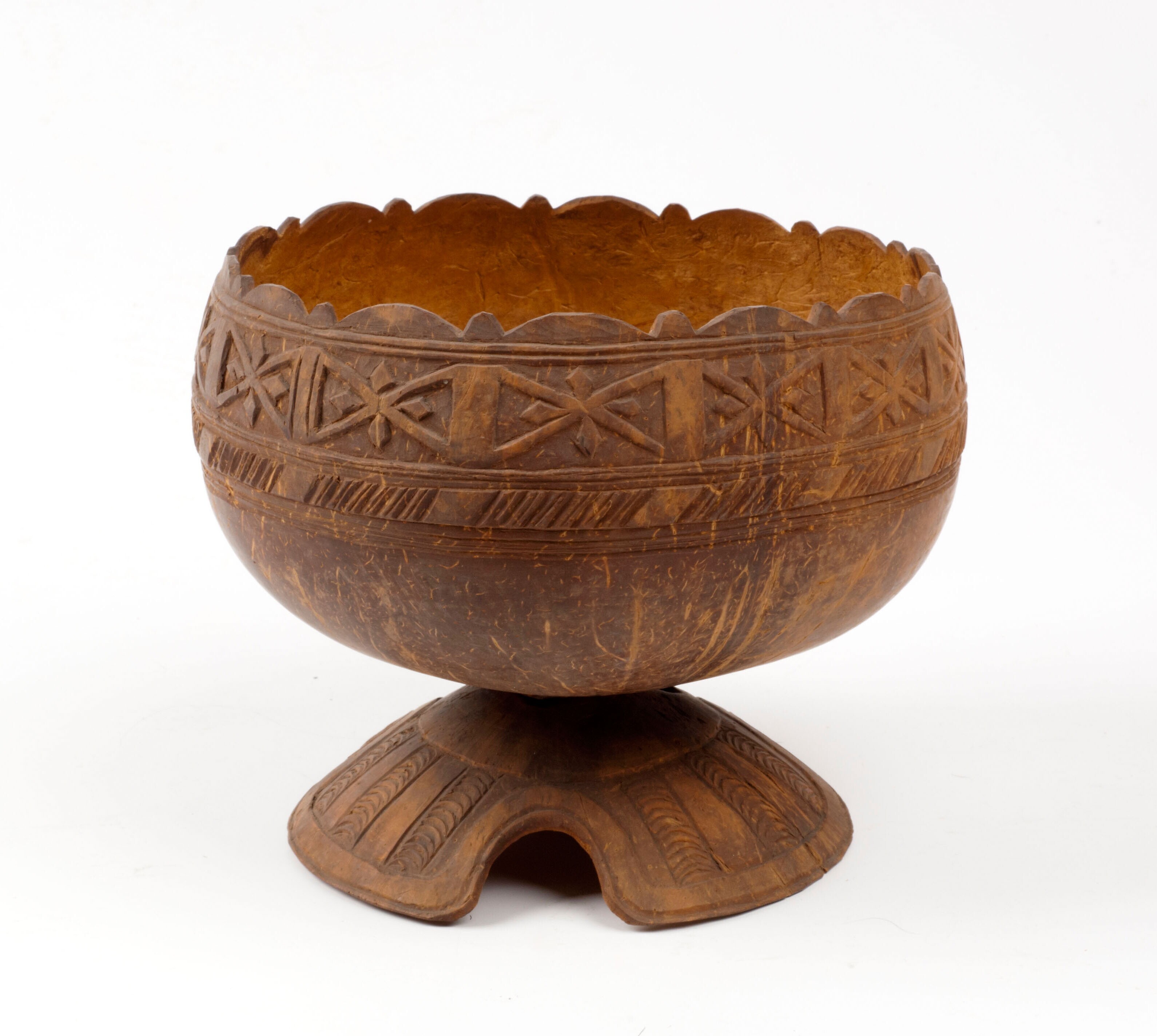 Standaard bestaande uit (vier) kokosnootschalen tafe...