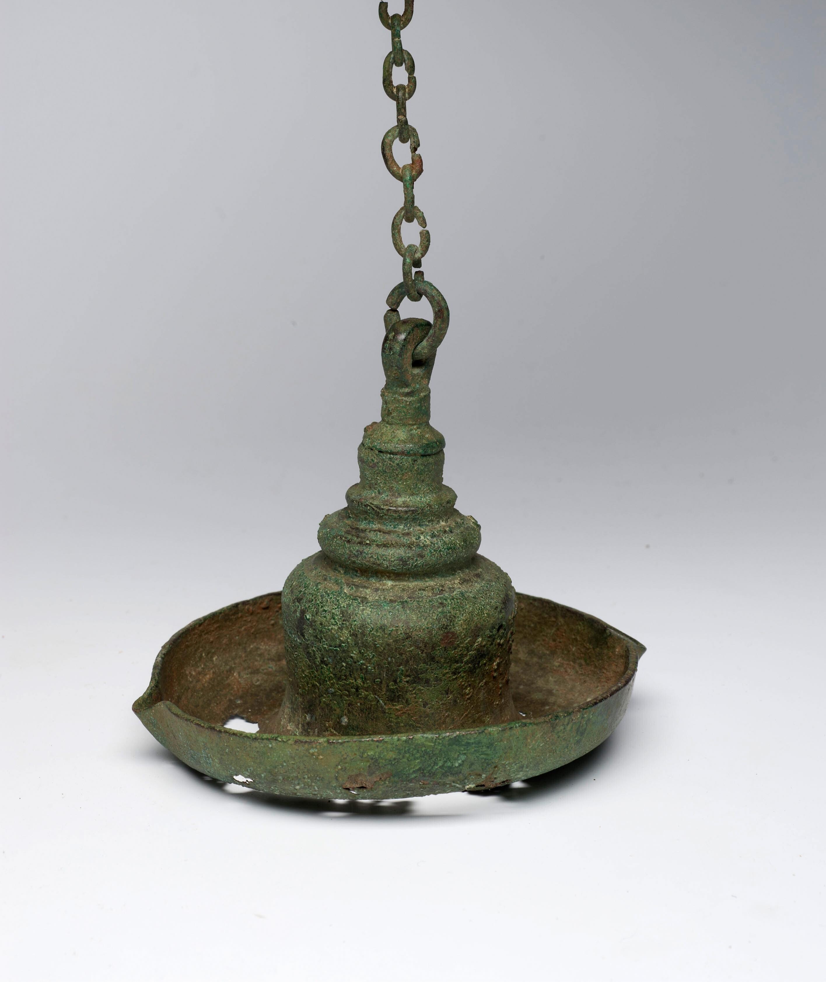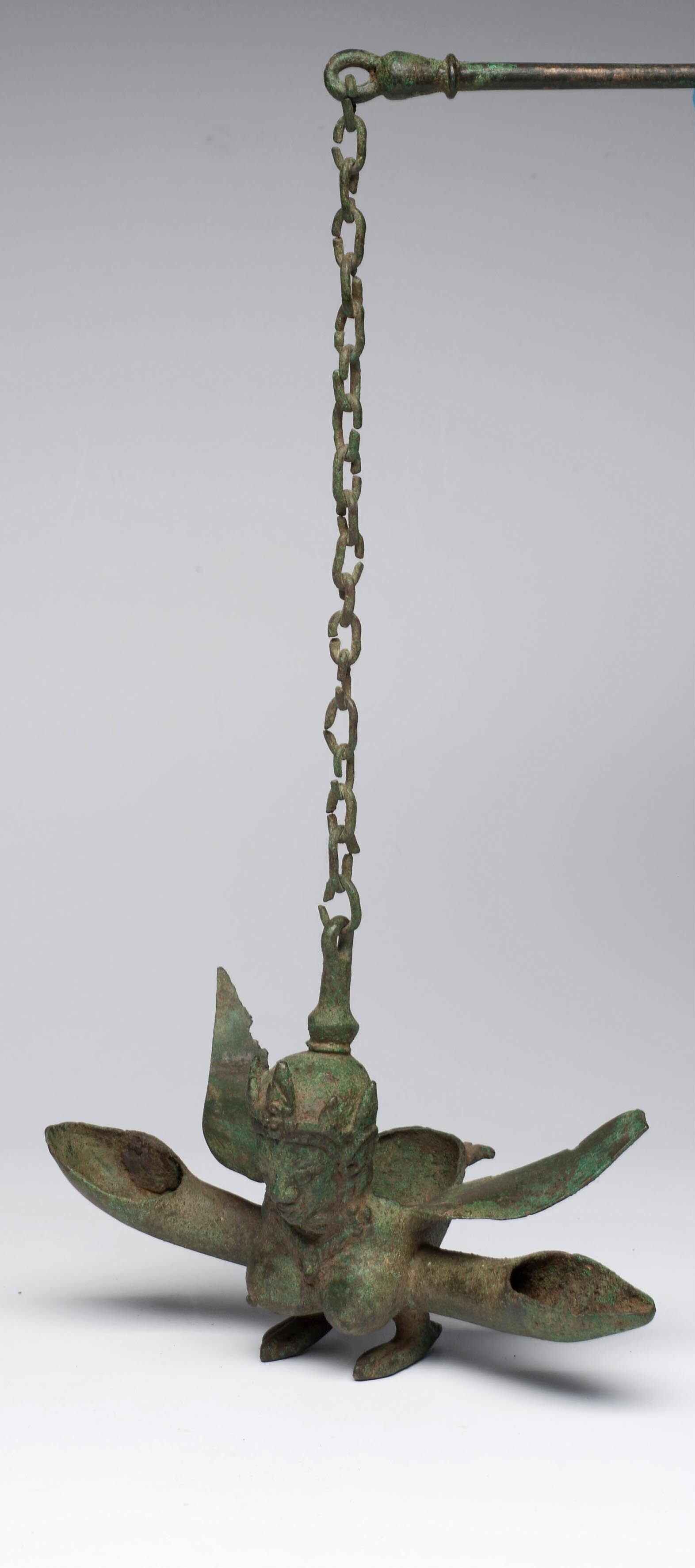 Indo-Javaanse bronzen hanglamp in de vorm van een ki...