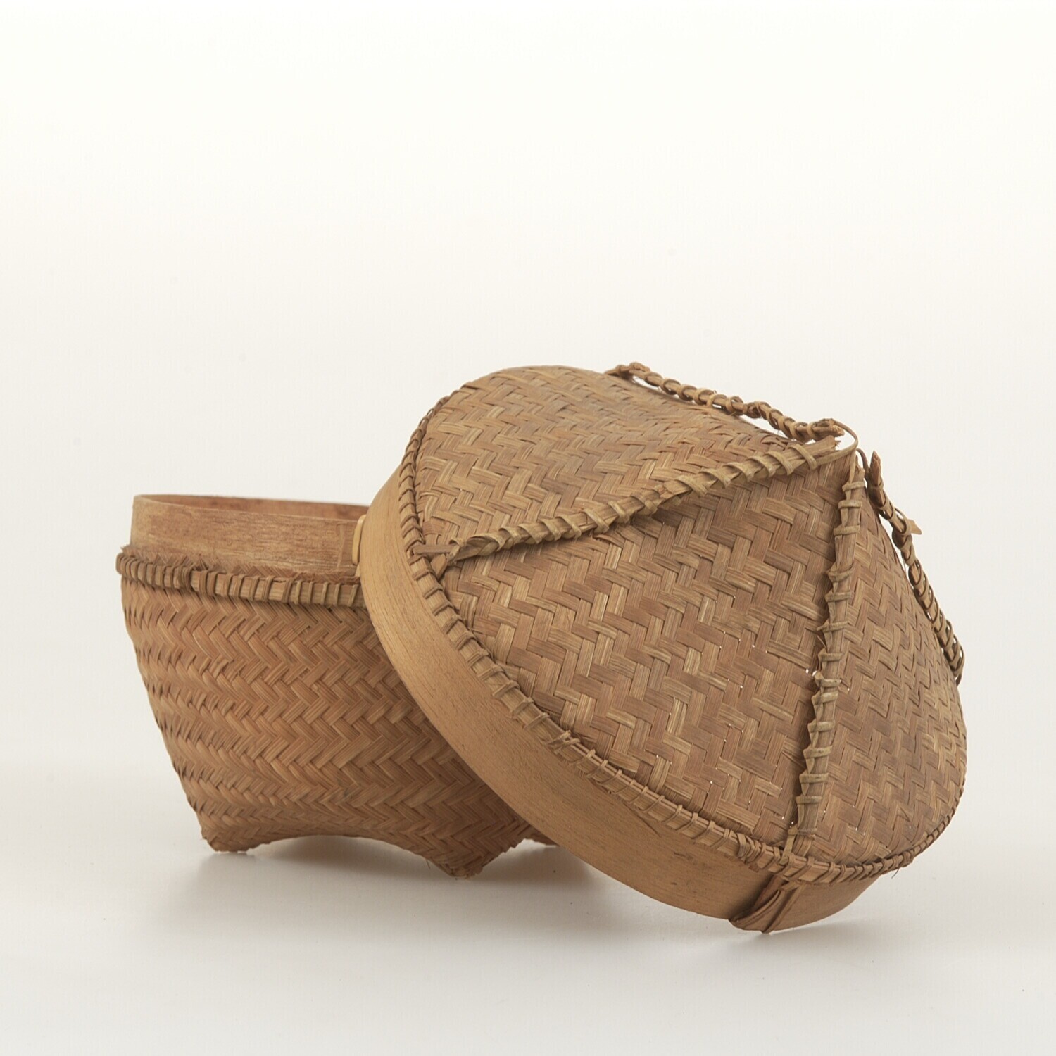 Gevlochten huishouddoos van bamboe voor het bewaren ...