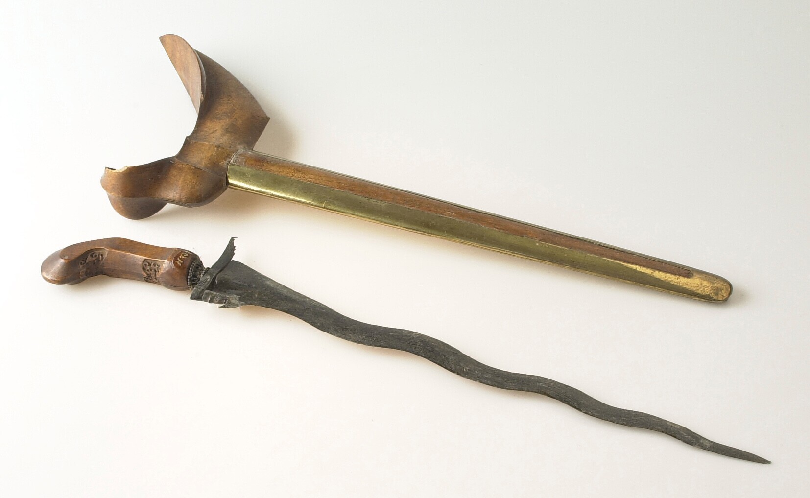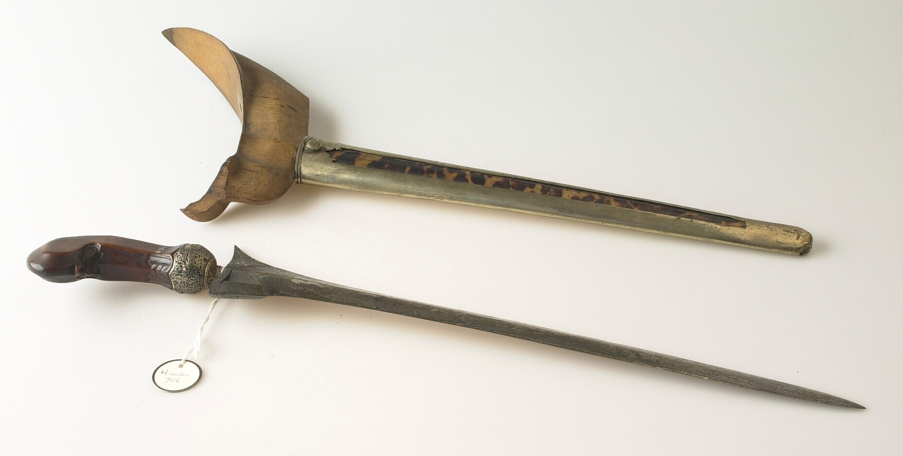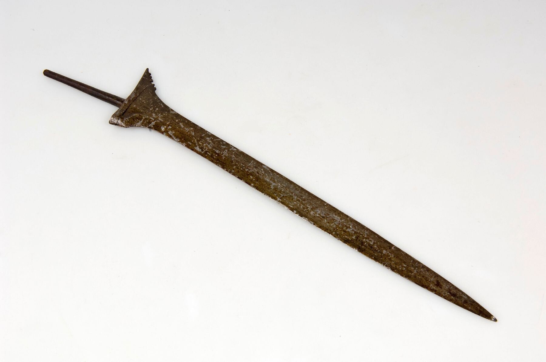 Rotan lans voorzien van zwaardvormige ijzeren punt
