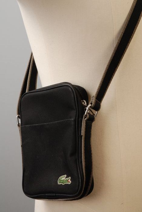 Zwart tasje, merk Lacoste, rechthoekig, mogelijk namaak