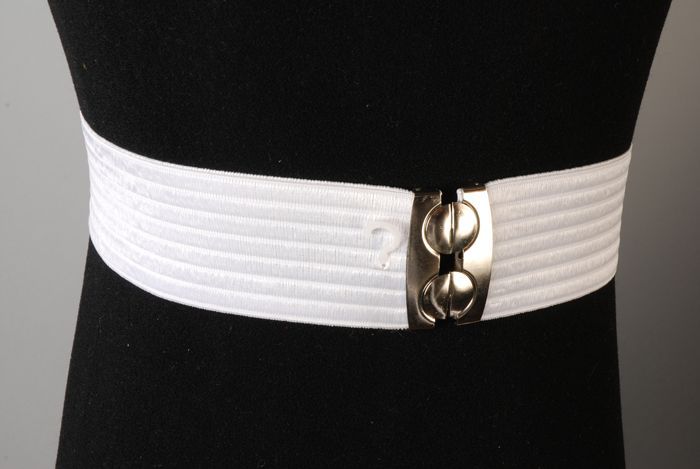 Riem, wit, elastisch, met aan beide uiteinden metale...