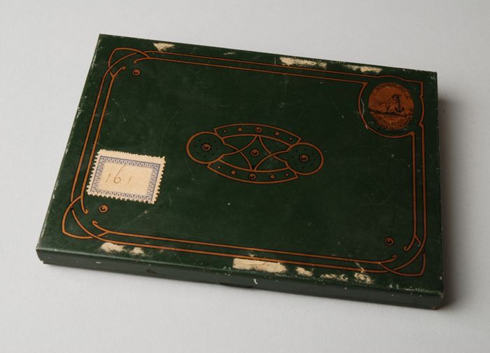 Tabaksblik, Van Nelle, groen met gouden biezen en sc...