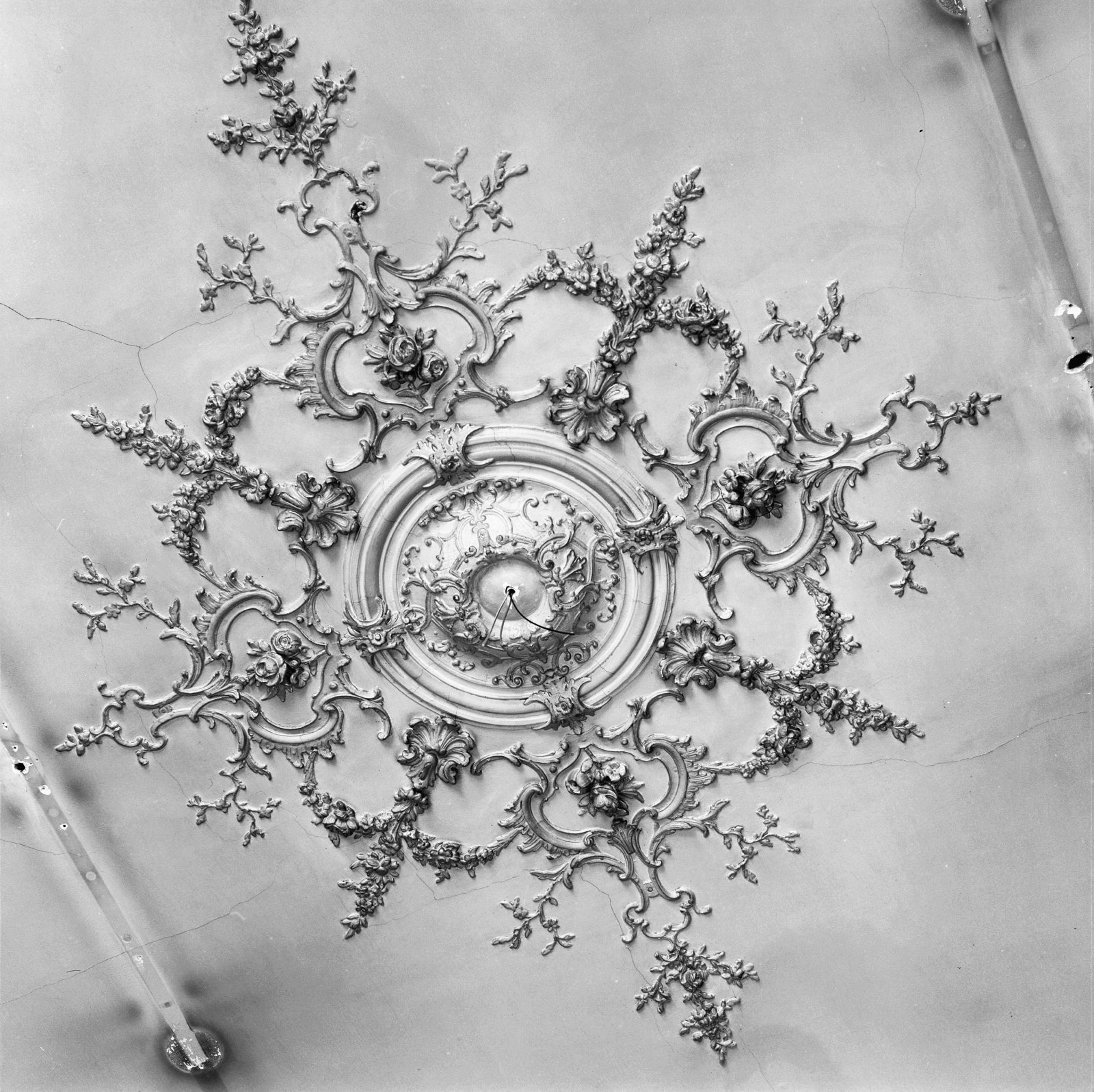 Interieur, detail plafond: middenstuk