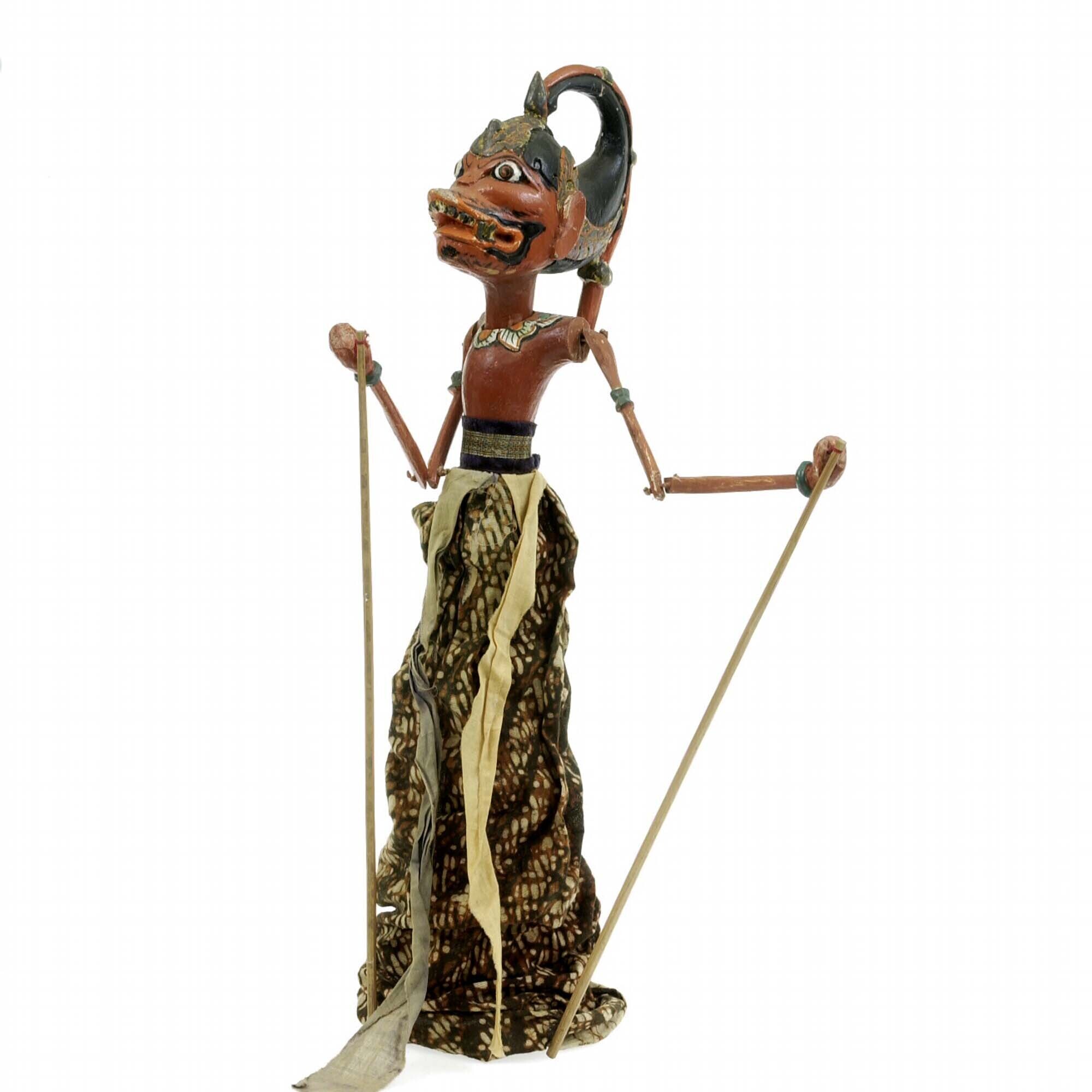 Houten wajangpop mogelijk voorstellende Musta of Ron...
