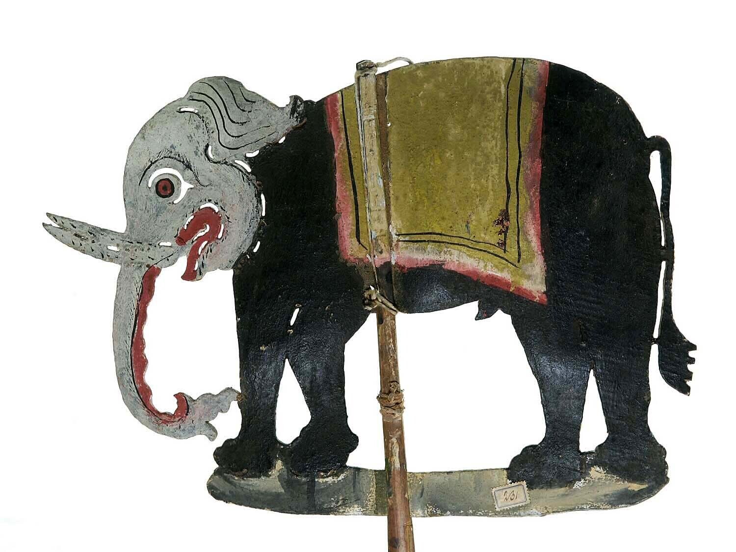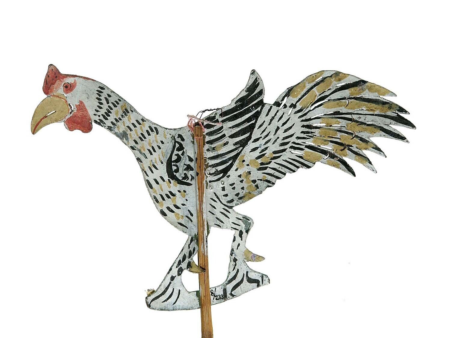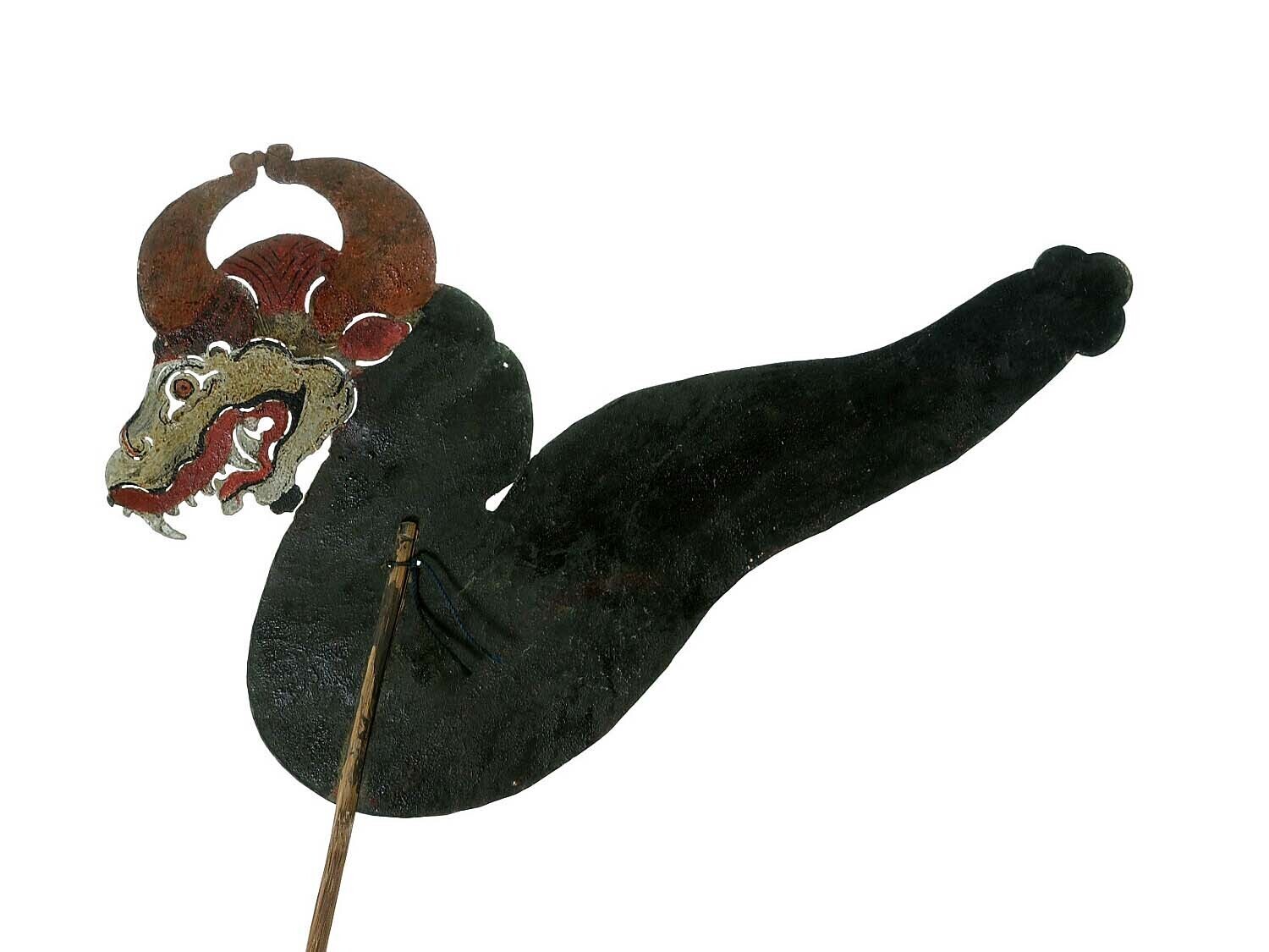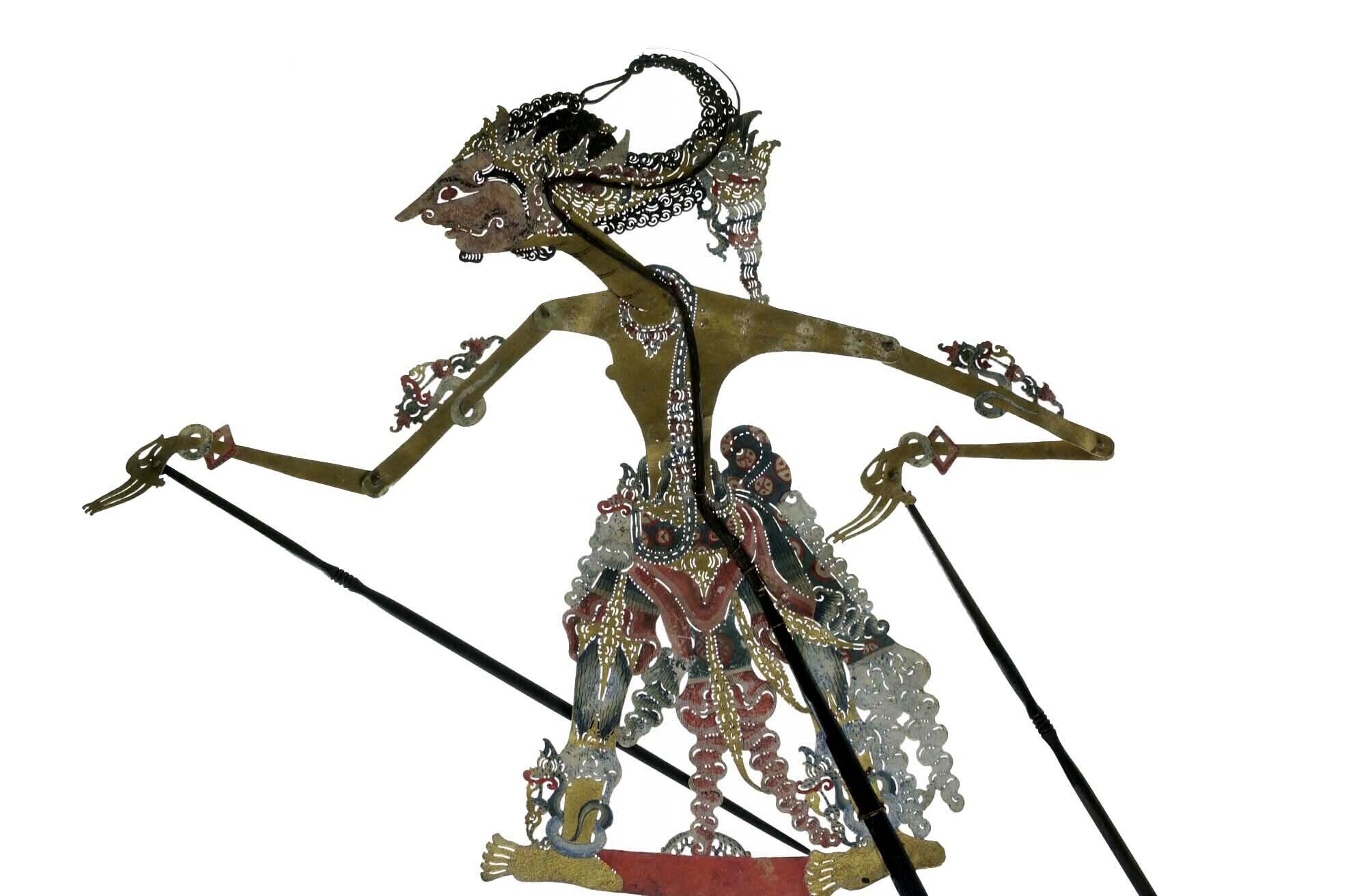 Wajangfiguur Kulit, voorstellend een optrekkend en g...