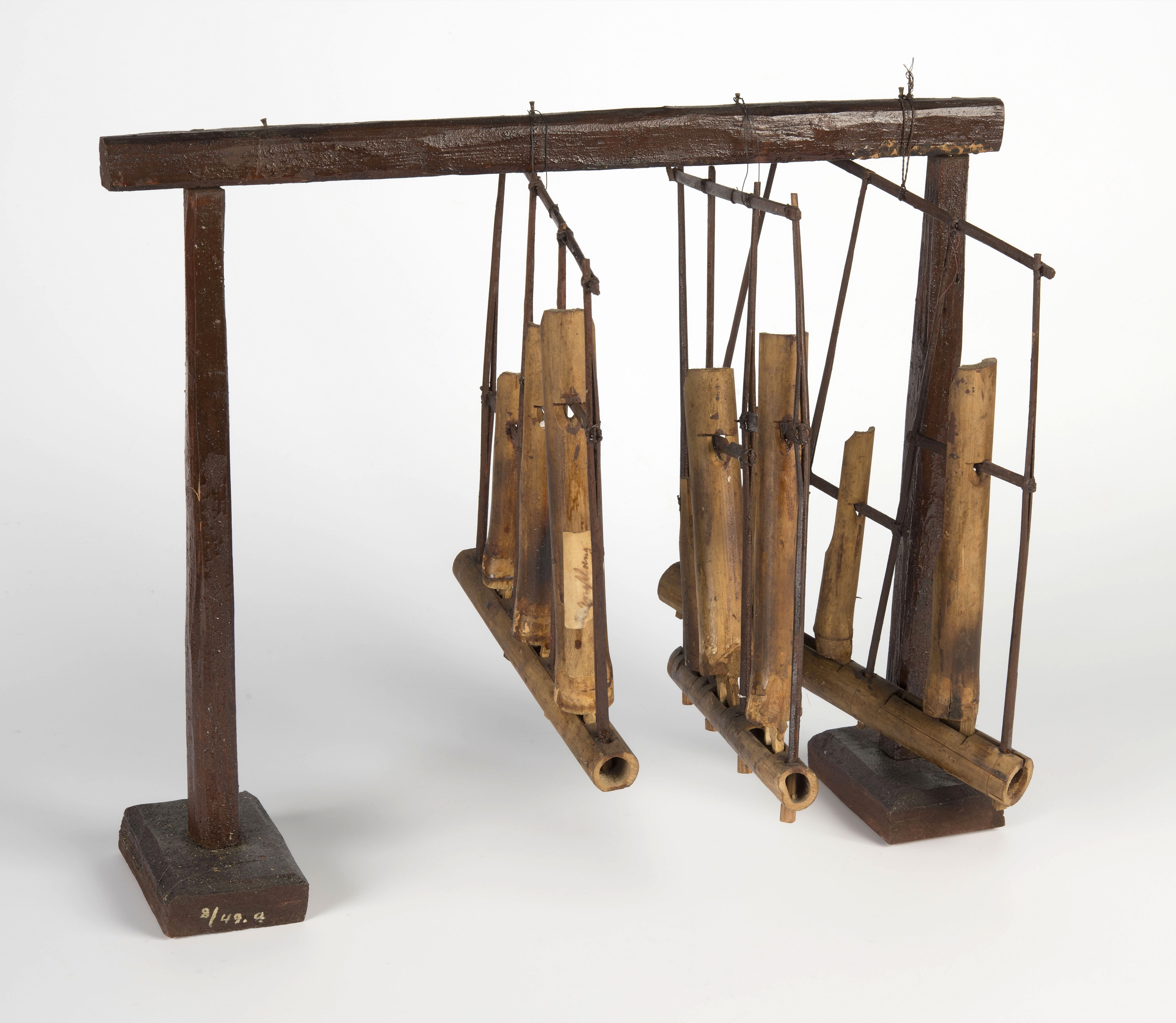 Model van een rek voor bamboe schudinstrumenten