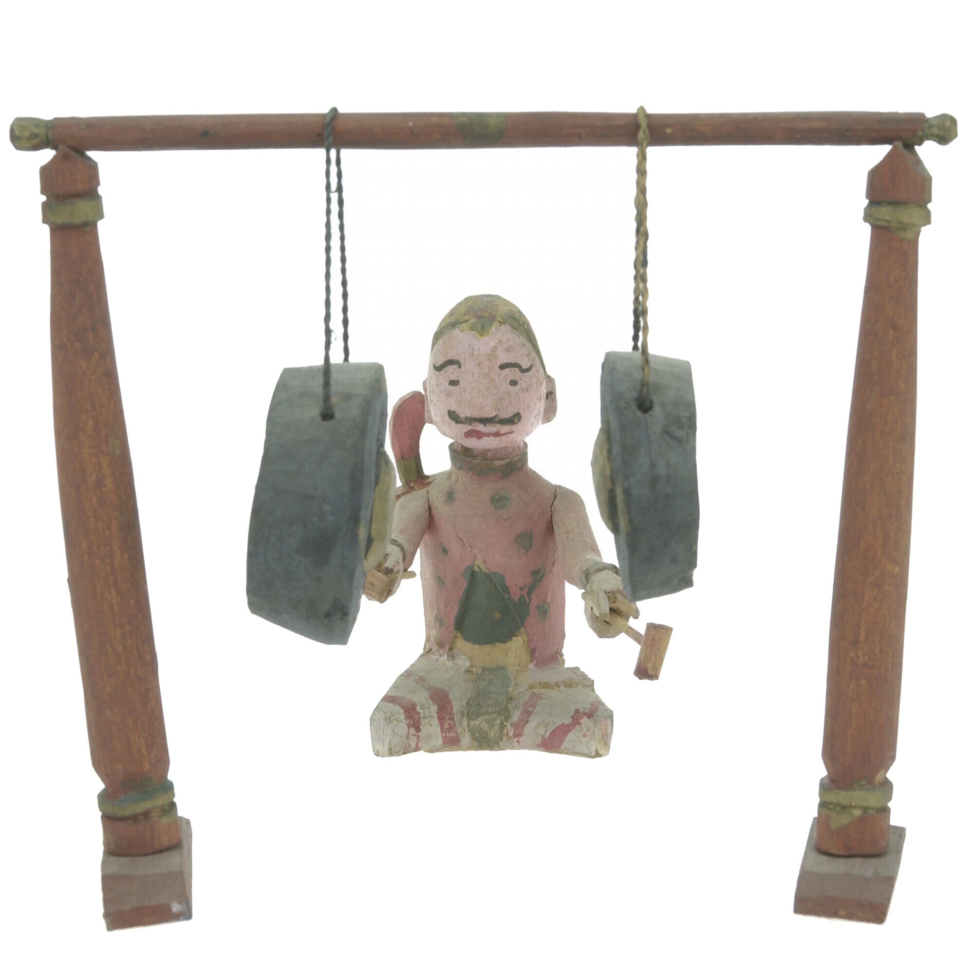 Model van hout van een stel gongs met standaard, ond...