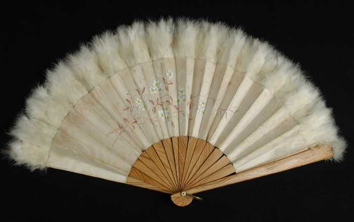 Vouwwaaier met 16 houten benen, dubbel blad van ivoo...