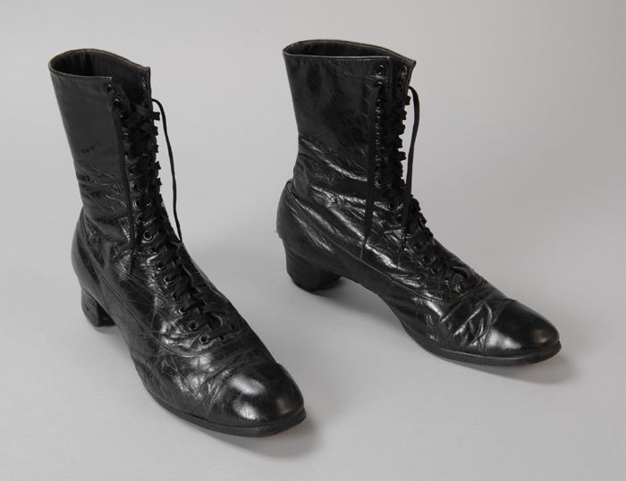 Zwarte leren enkellaarzen met vetersluiting