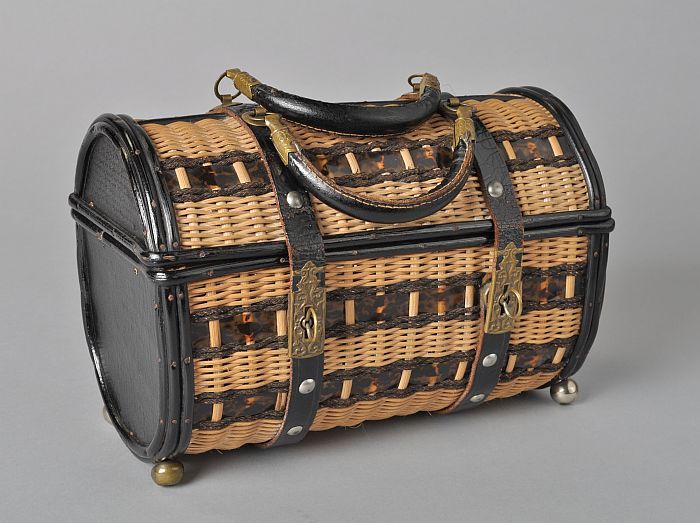 Handtas, koffertje van gevlochten pitriet met leren ...