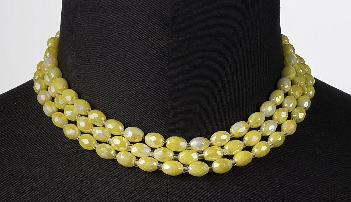Kralencollier van drie strengen gele kralen met pare...