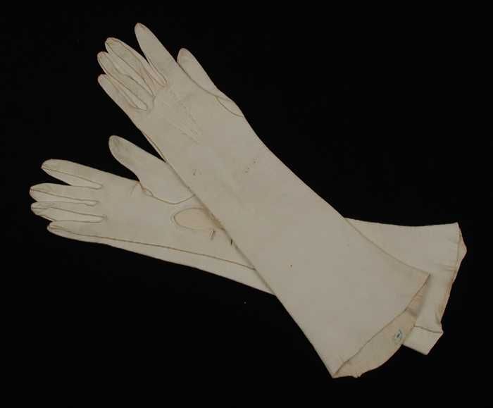 Paar ellebooglange trouwhandschoenen van wit leer me...