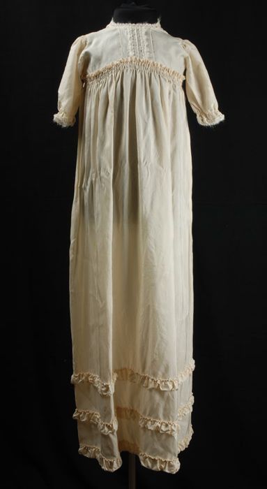 Ivoorwitte doopjurk van parachutezijde, met pofmouwe...