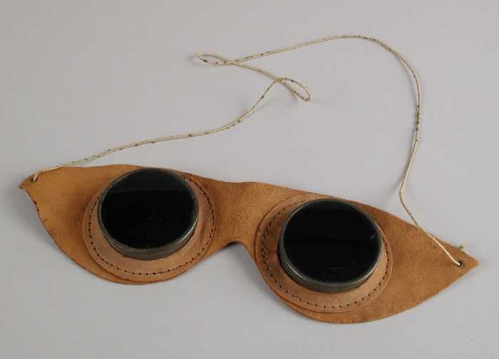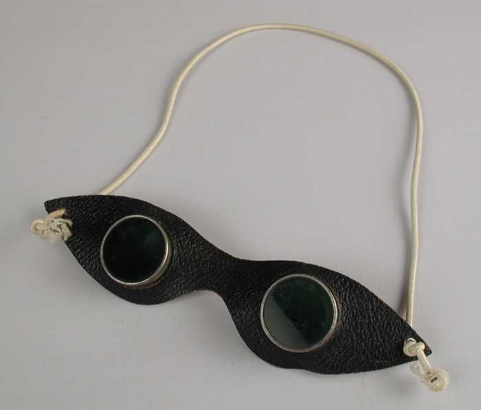 Hoogtezonbril, brilvormige leren ondergrond waarin t...