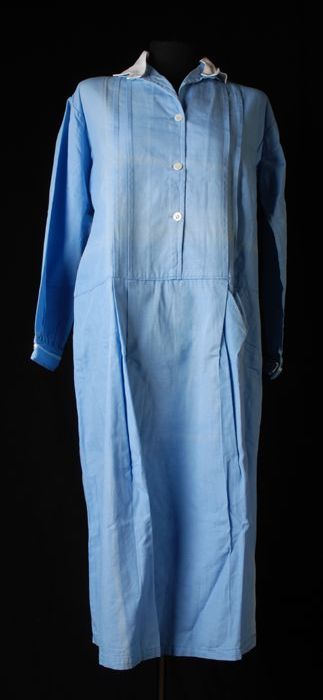 Lichtblauw katoenen kuitlange dienstbodejurk