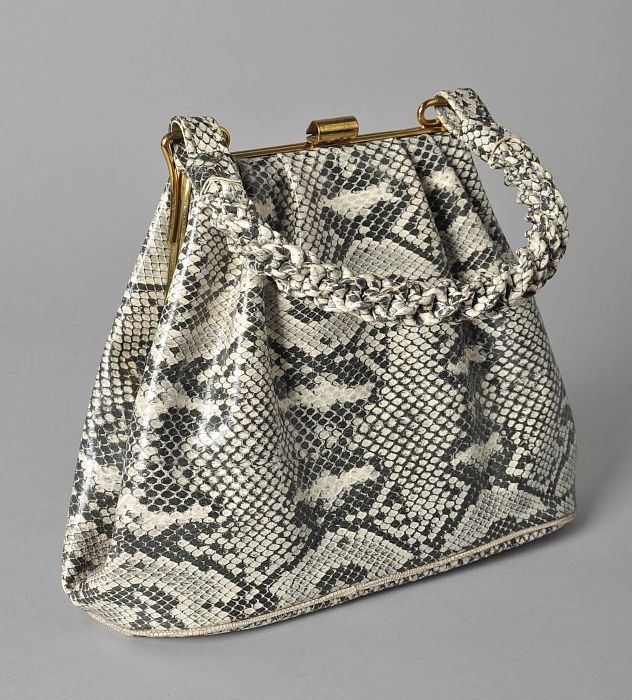 Slangenleren handtas, met bijbehorend beursje, spieg...