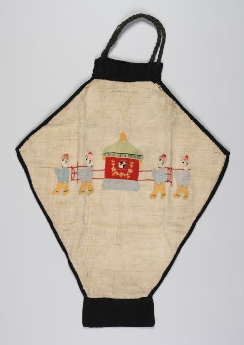 Zwart fluwelen reticule met opgenaaid gouddraad, zwa...