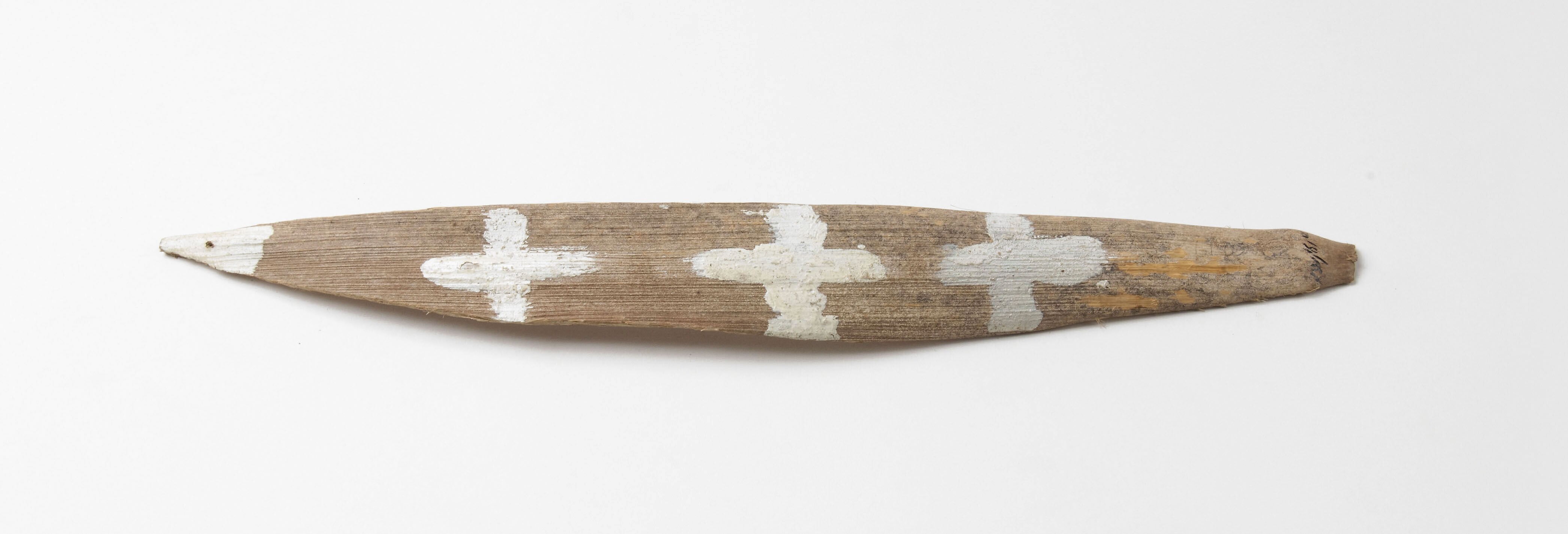 Palmbladnerf beschilderd met kalk en roet, gebruikt ...