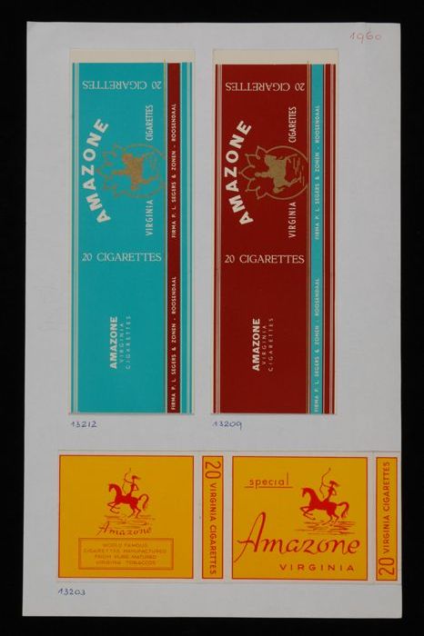 Vel papier met pakje "AMAZONE" sigaretten