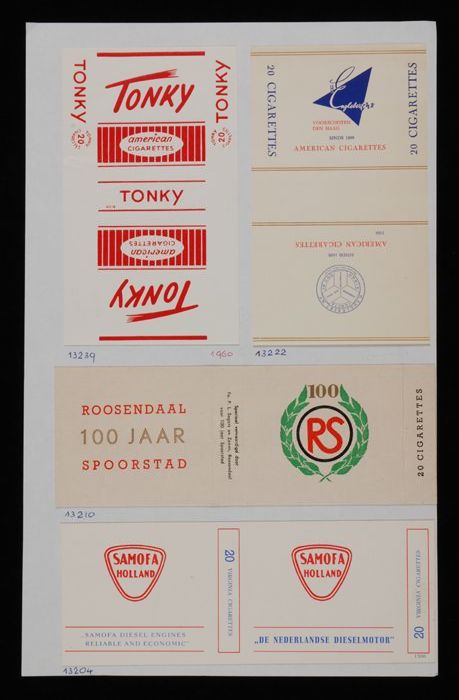 Vel papier met pakjes "Tonky, H. Engelbert N.V., RS,...