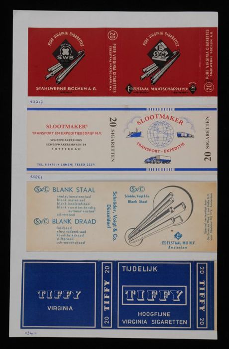 Vel papier met pakjes "ESM, SWB, Slootmaker, SVC, TI...