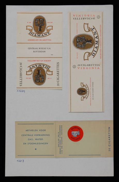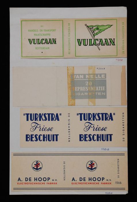 Vel papier met pakjes "Vulcaan, Representatie, Turks...