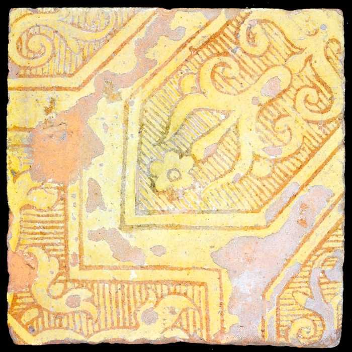 Aardewerk plavuis met doorlopend decor in slibtechni...