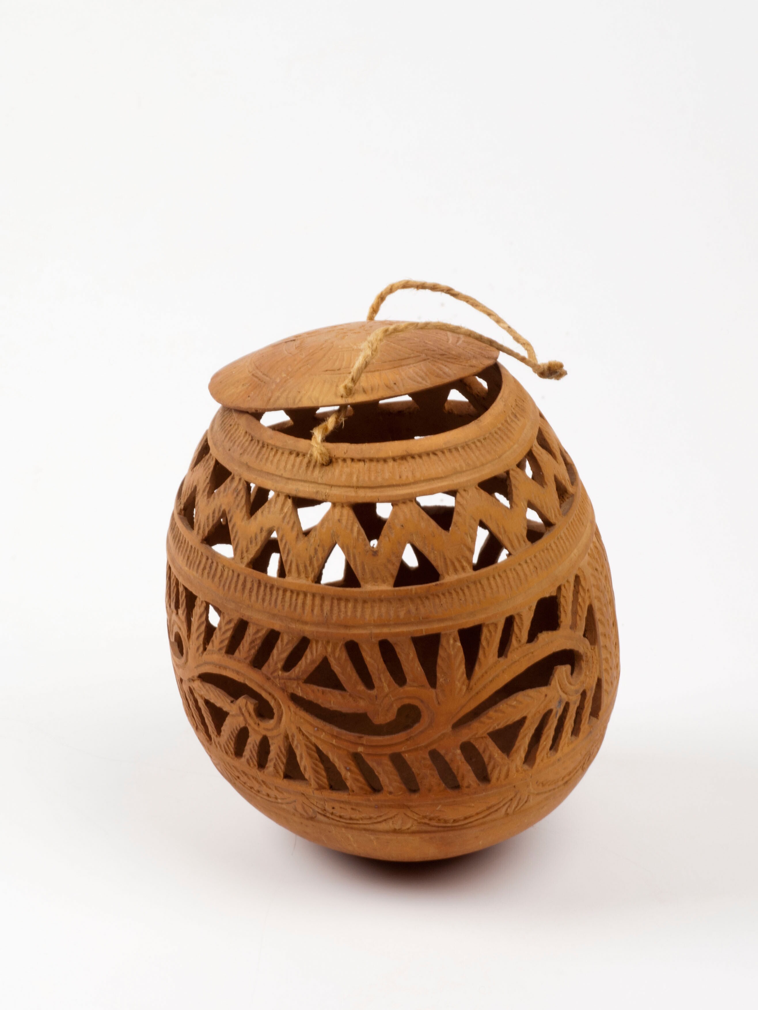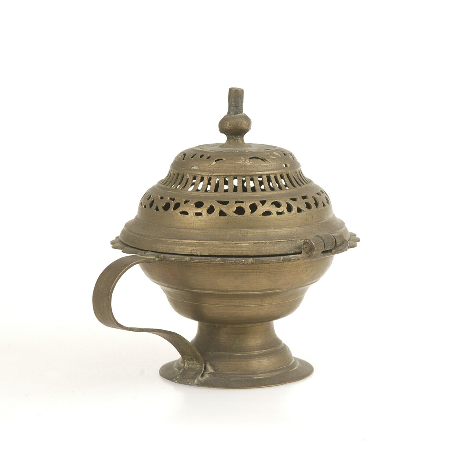 Messingen wierookbrander met ajour versierde deksel