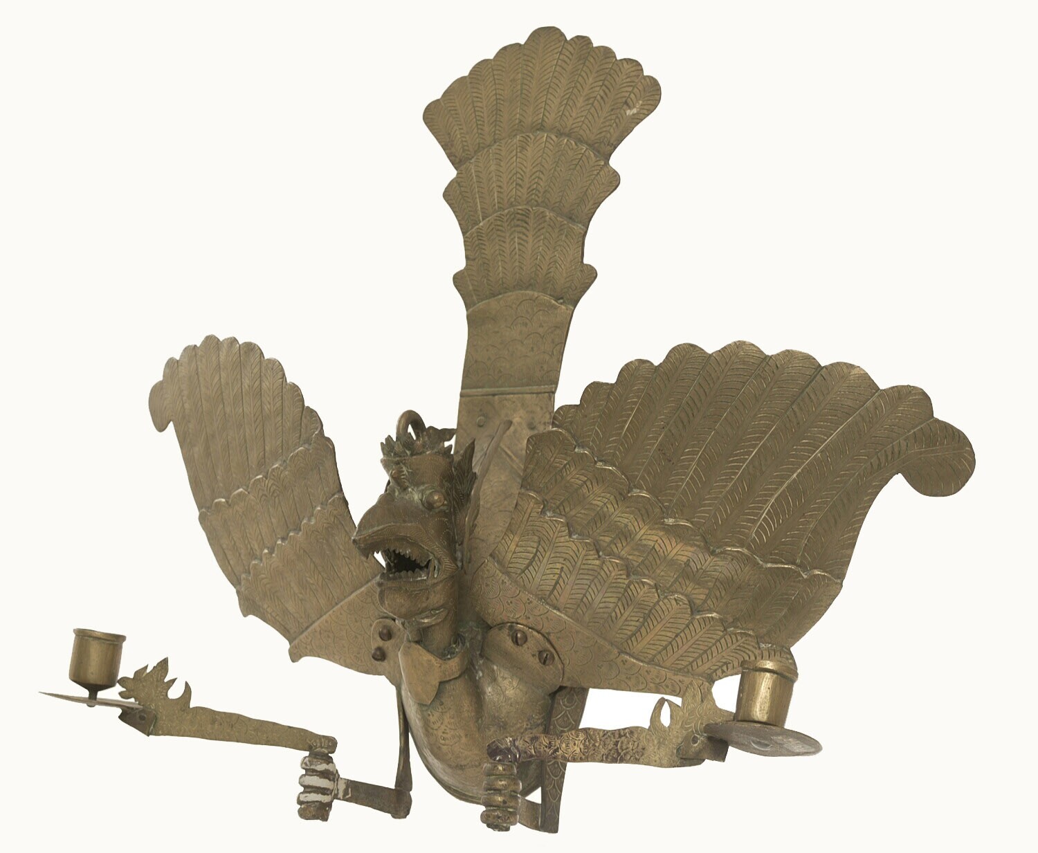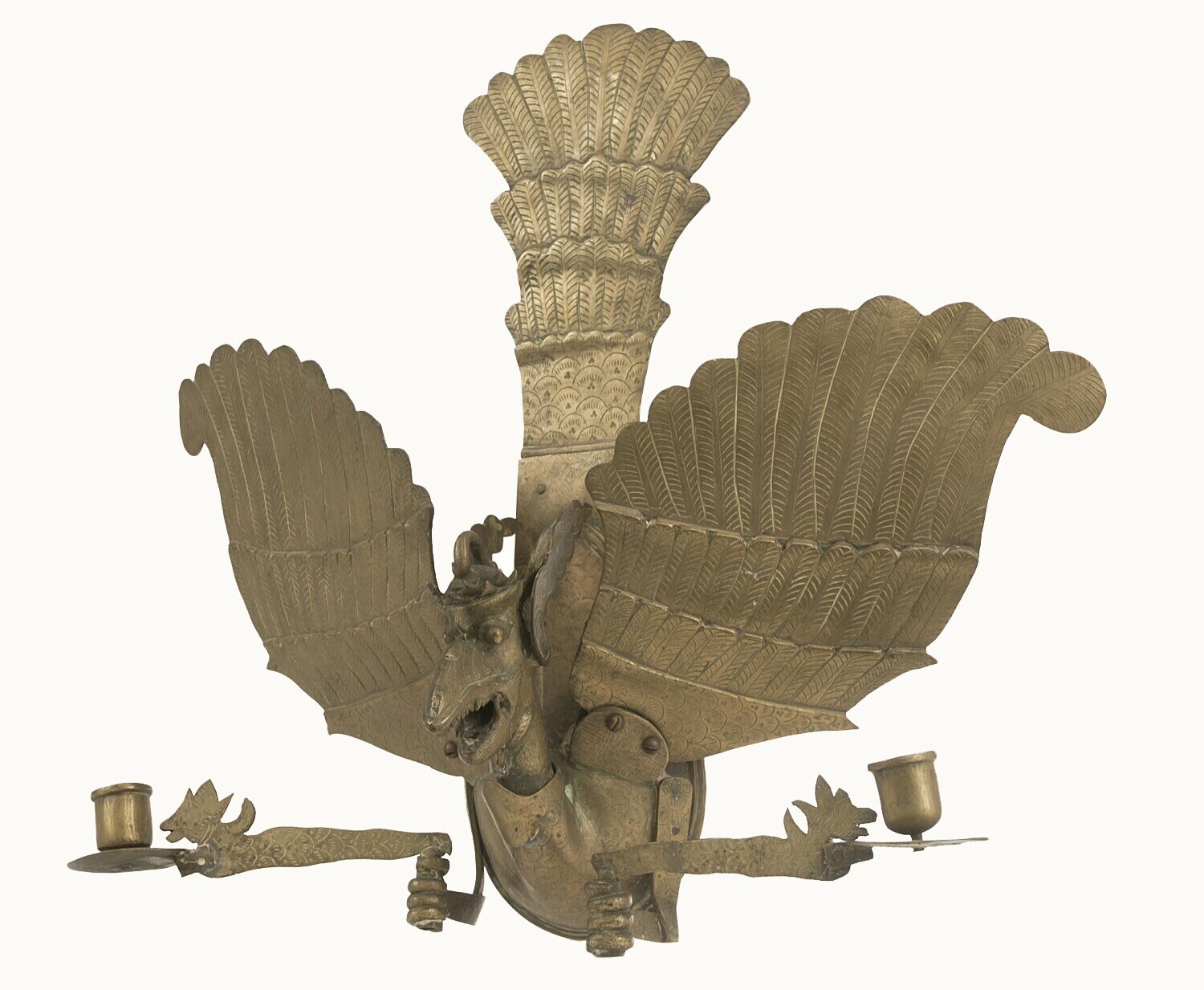 Messing muurlamp in de vorm van een gekroonde Garuda