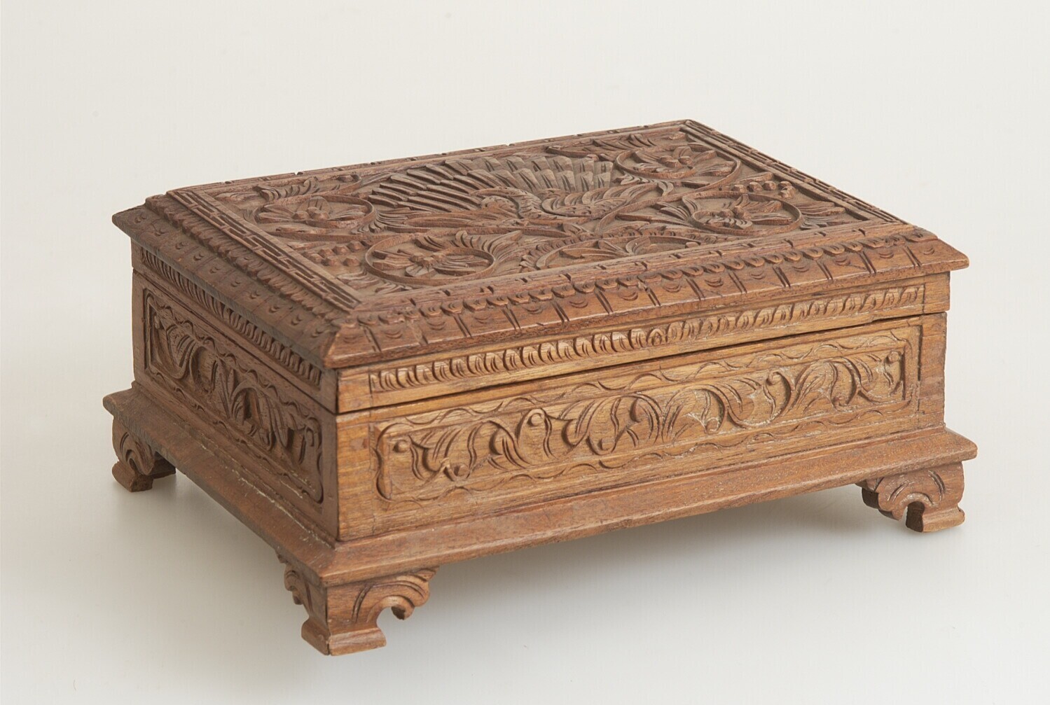 Houten doos met snijwerk