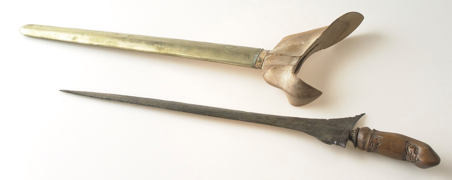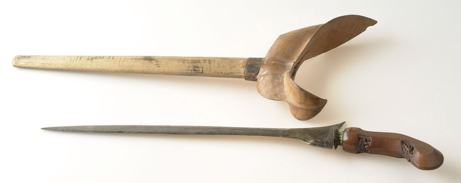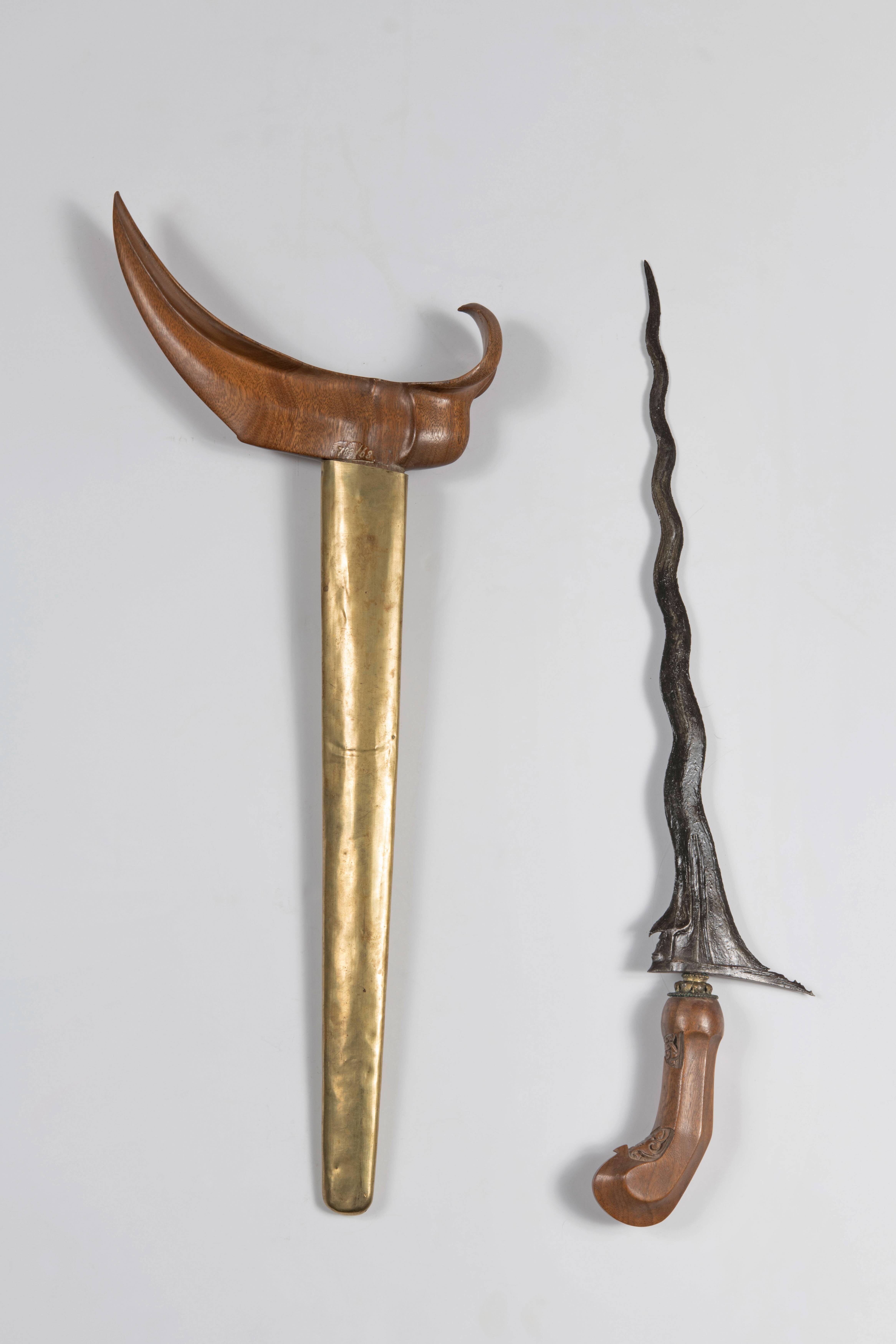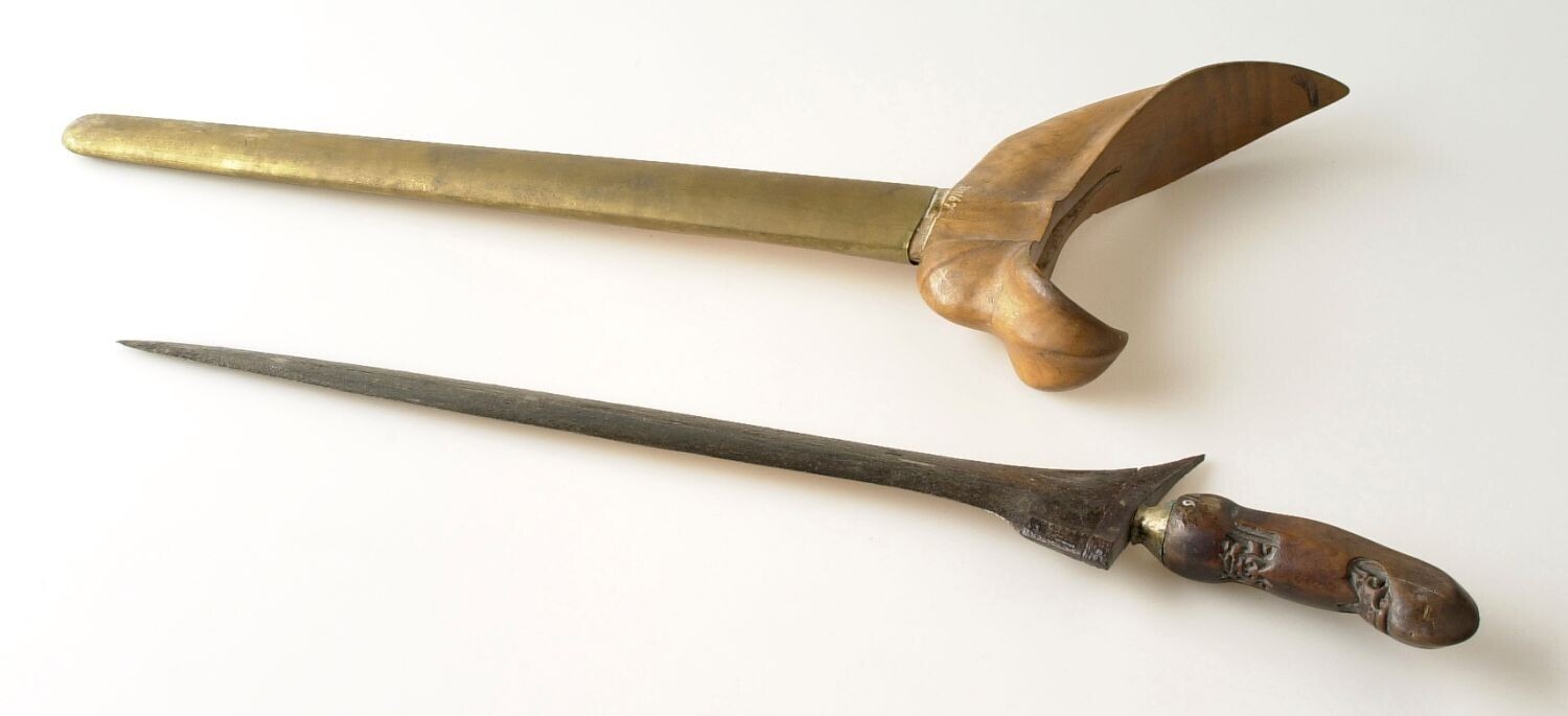 Rechte kris met houten greep en houten schede