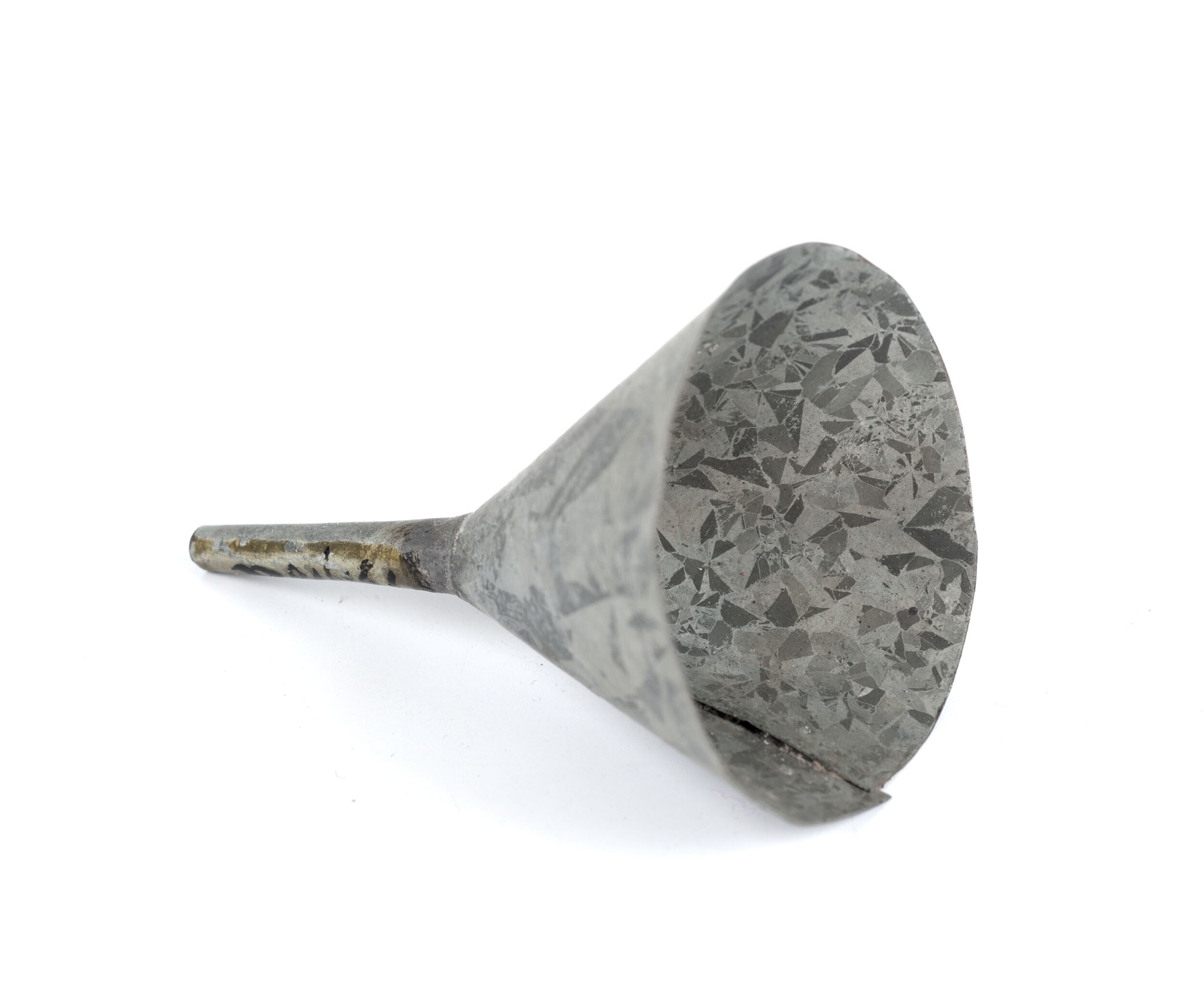 Blikken trechter, gebruikt als kinderspeelgoed