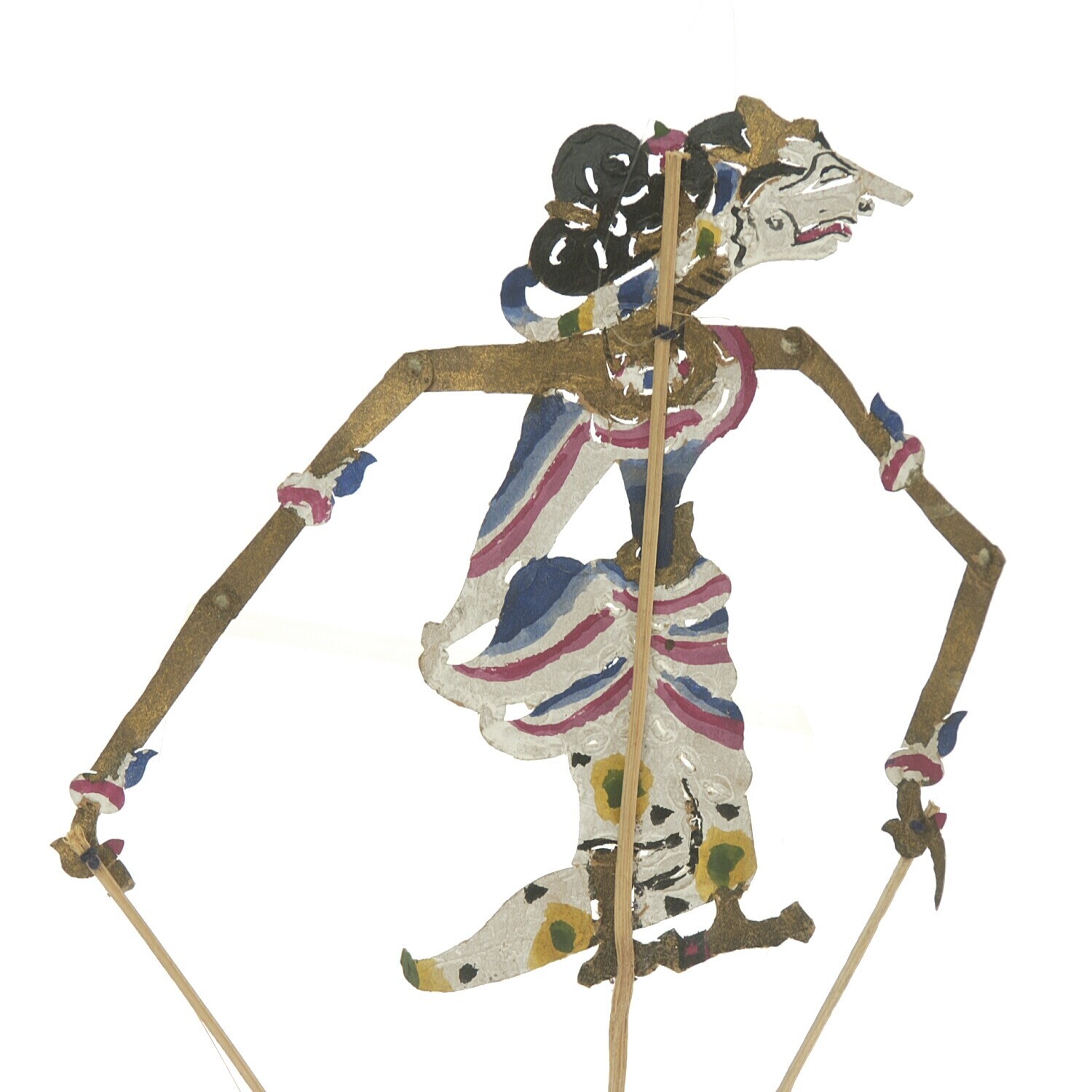 Grote houten wayangfiguur Prabu Kresna