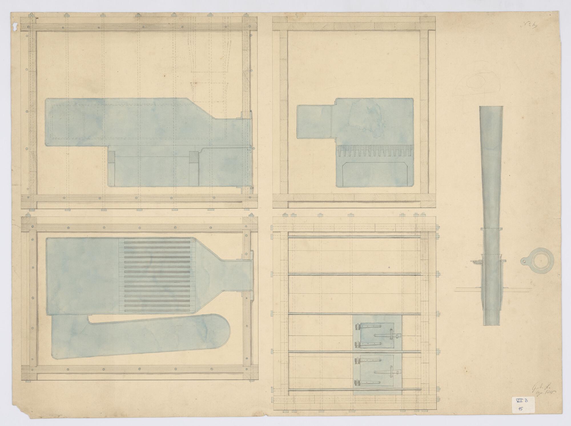 Zijaanzicht en bovenaanzicht van een baggermolen 1892