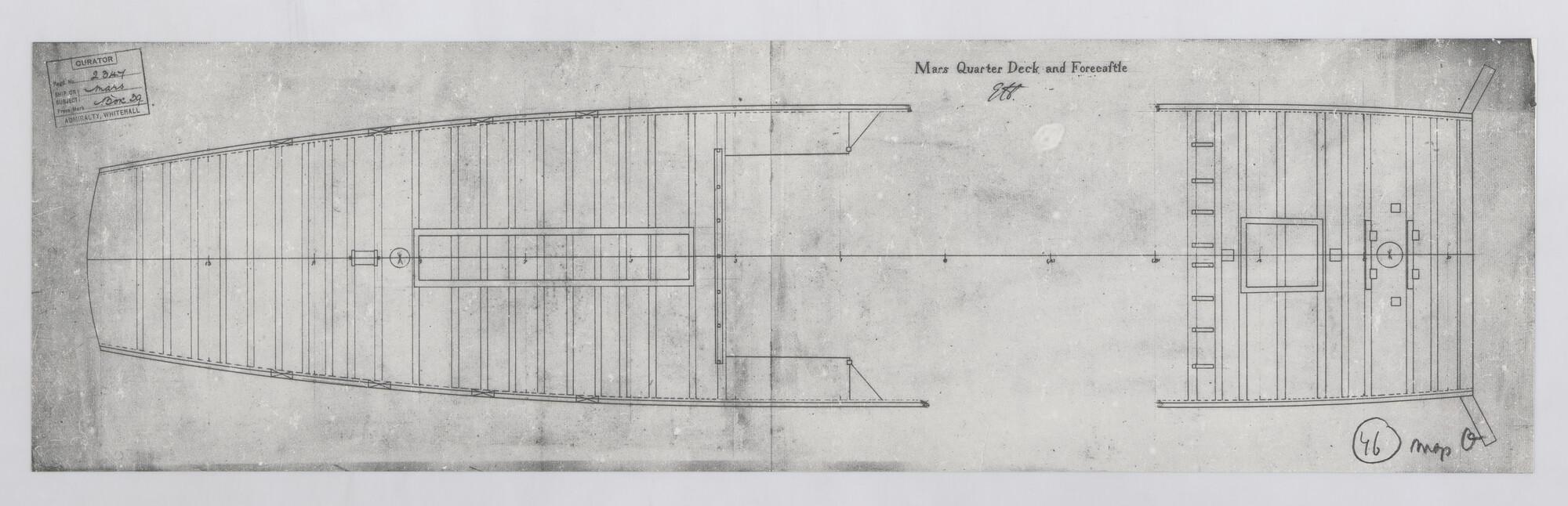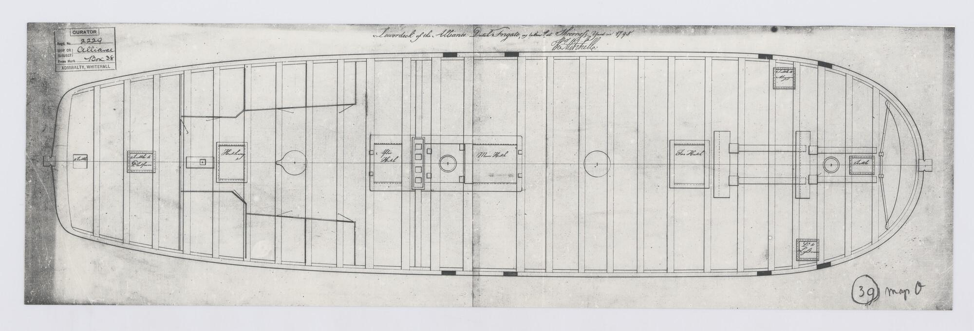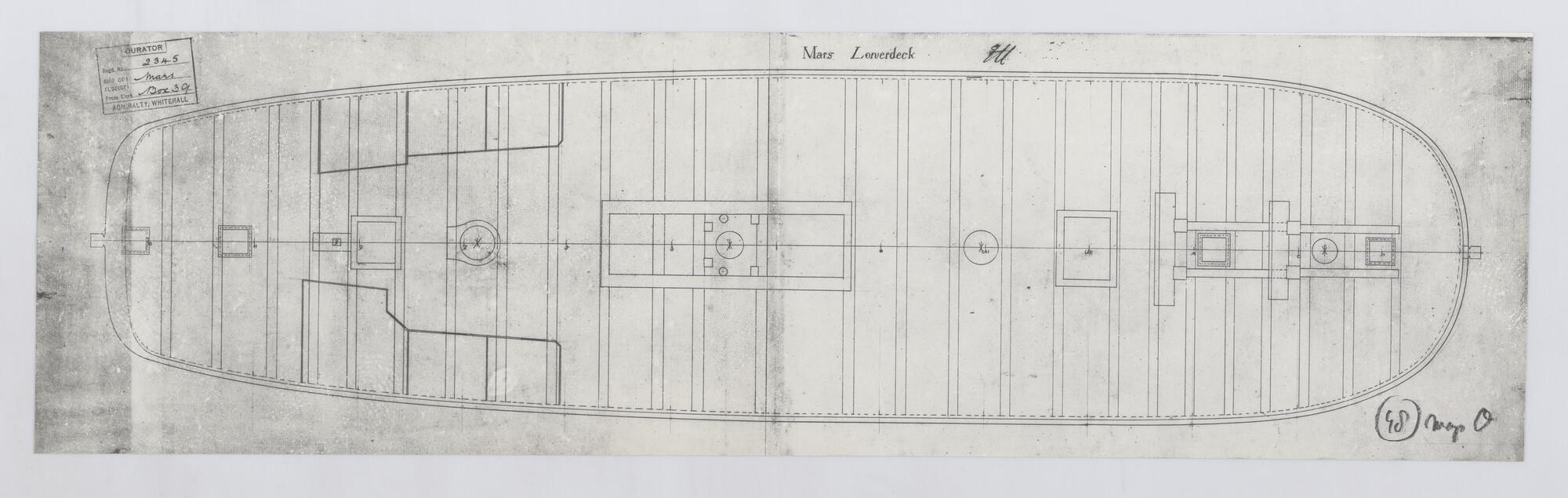 Benedendek ("lowerdeck") en platforms oorlogsschip P...