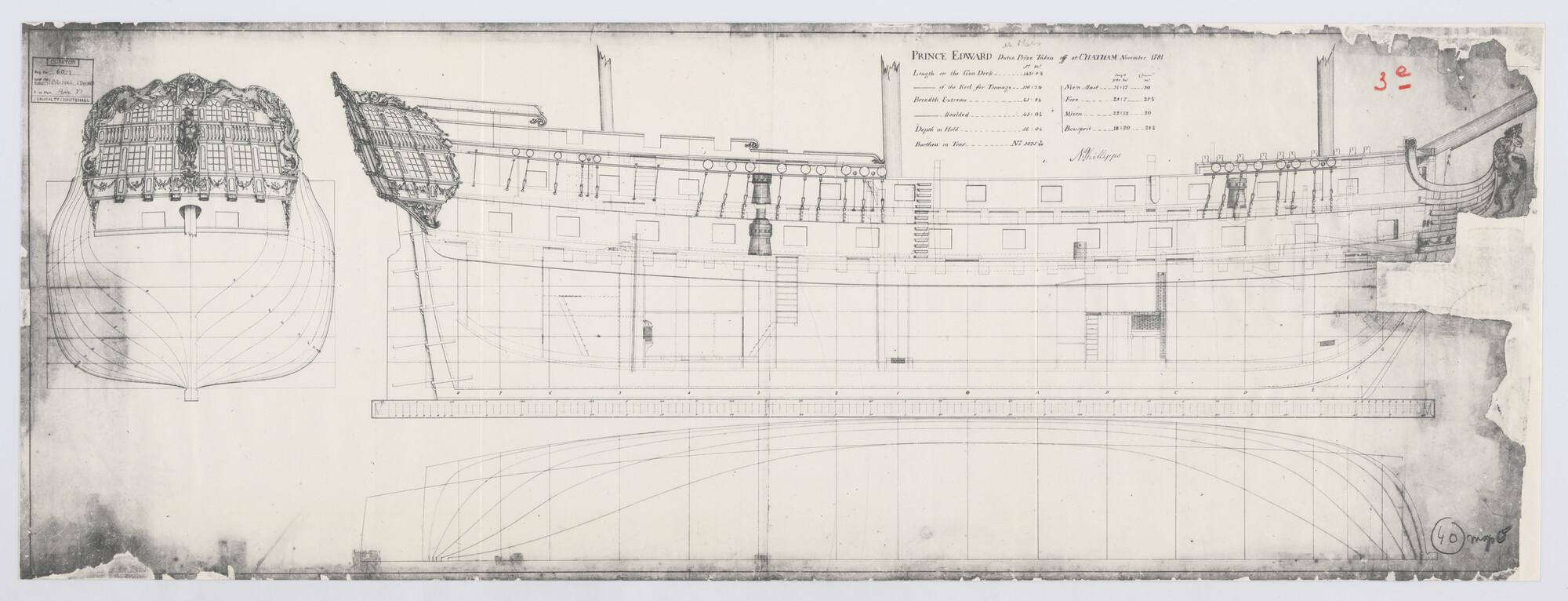 Zijaanzicht van linieschip Prince Edward (ex- Mars) ...