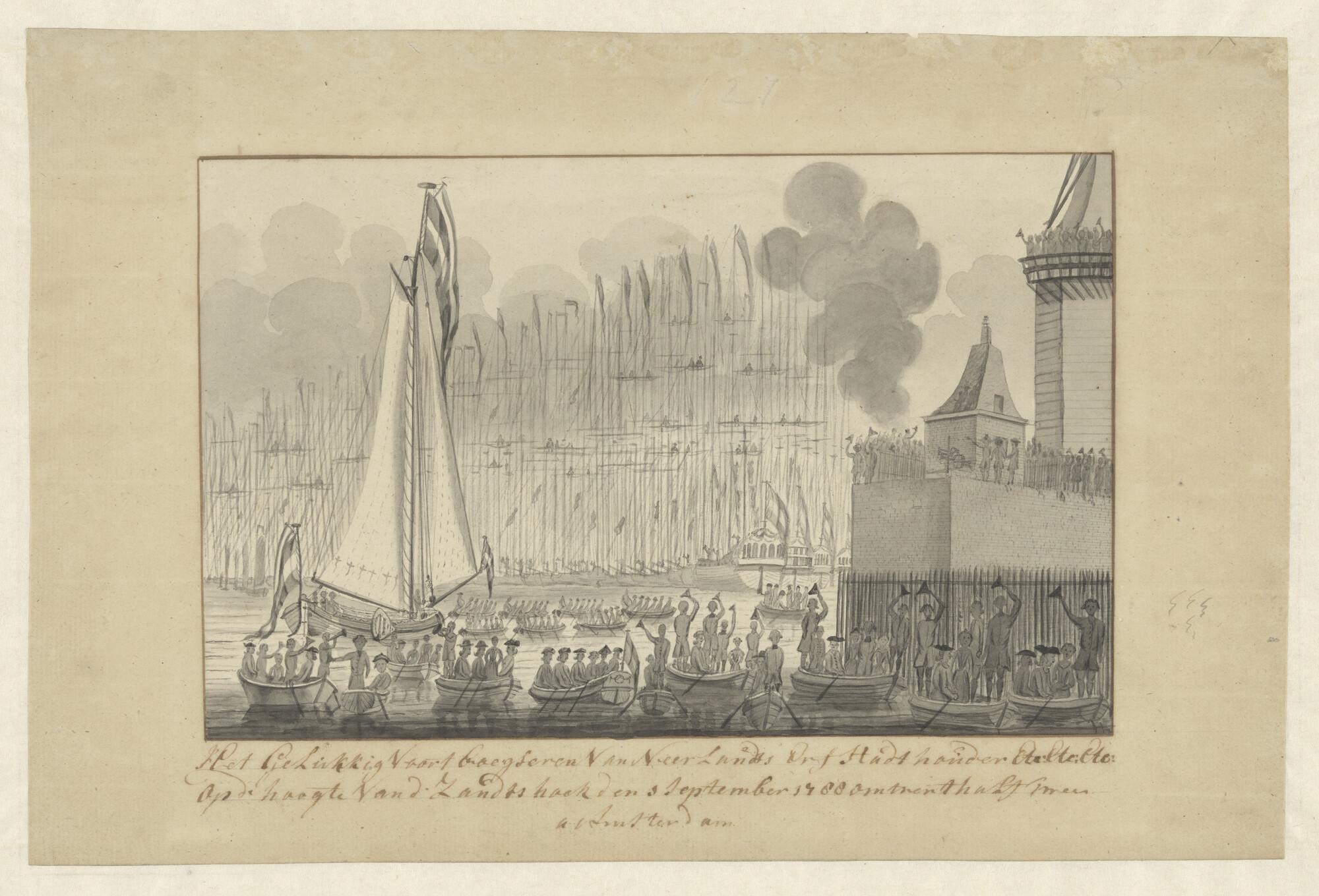 Zijaanzicht en bovenaanzicht Modderschouw met zeiltu...