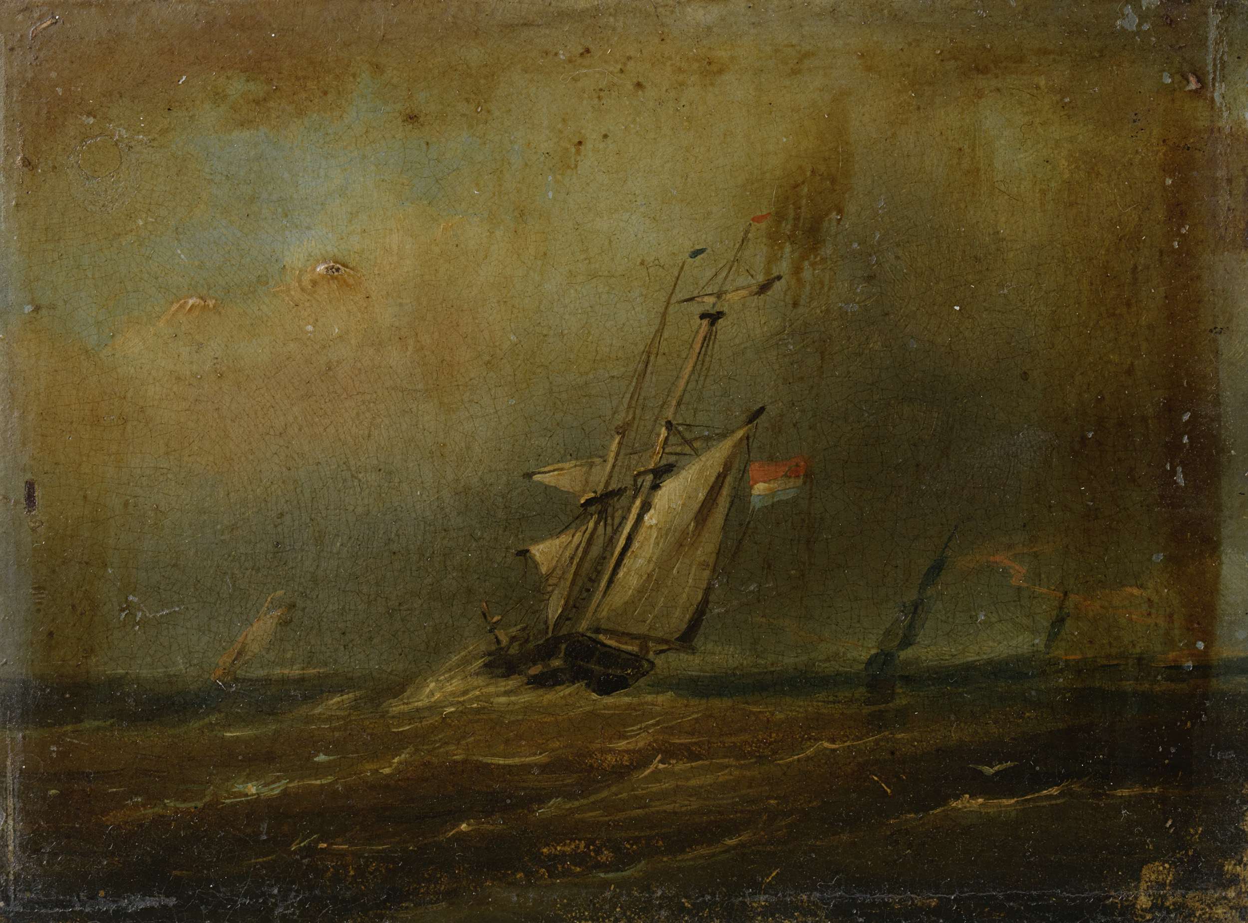 Woelige zee met zeilschepen