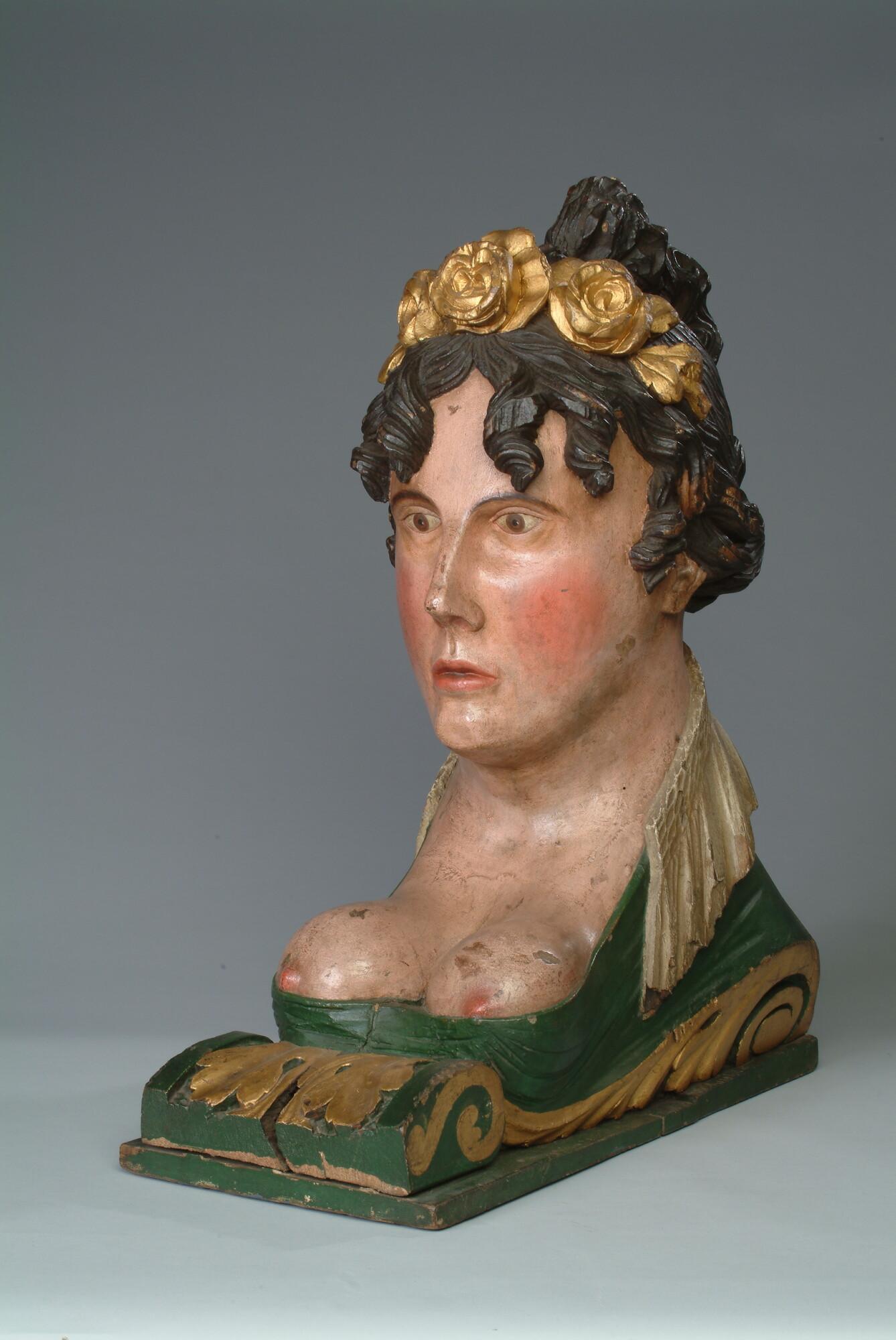 Roerkop, voorstellend een vrouwenhoofd getooid met d...