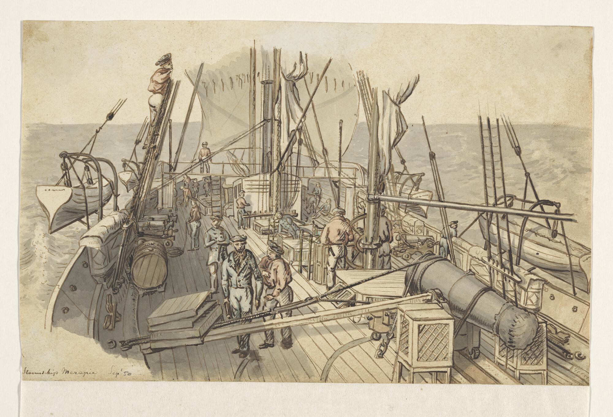 Dekaanzicht aan boord van het raderstoomschip Zr.Ms....