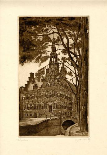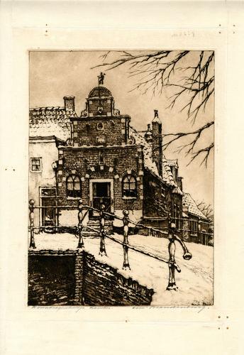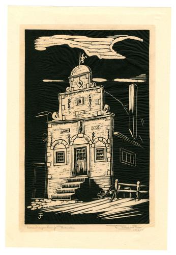 Houtsnede van het Korendragershuisje door Tjeerd Tui...