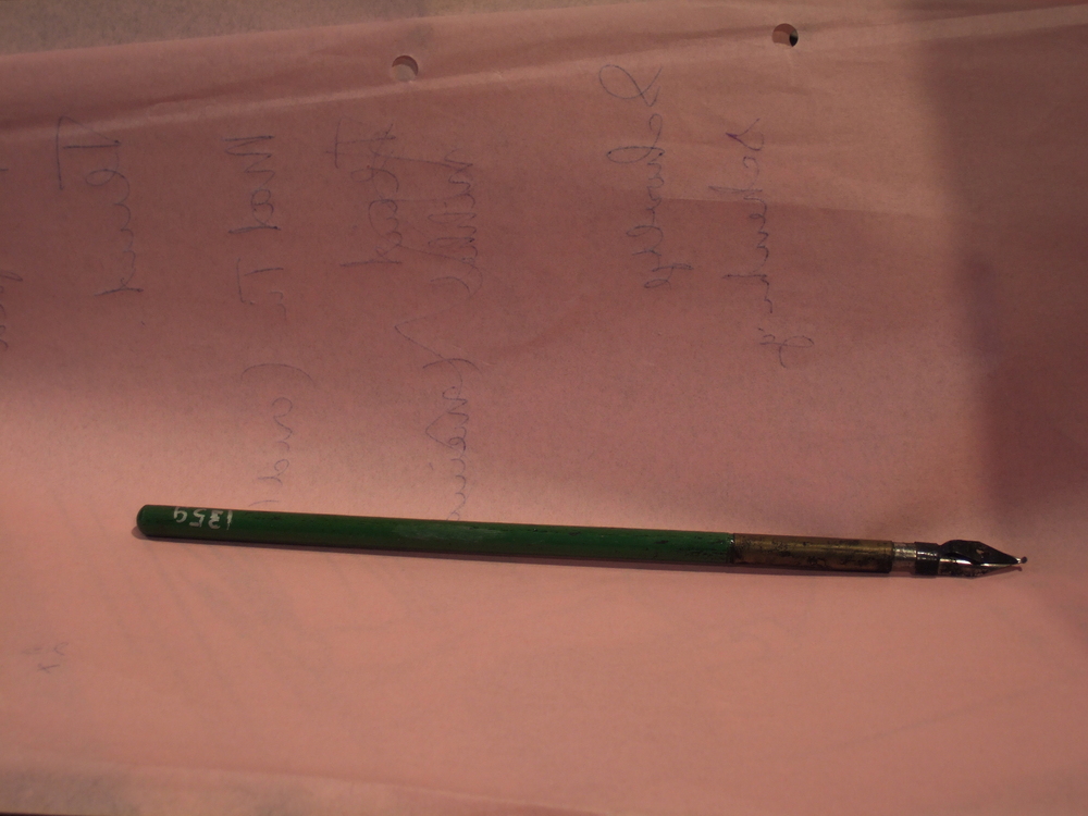 penhouder van groen gelakt hout, met pen voor kaligr...