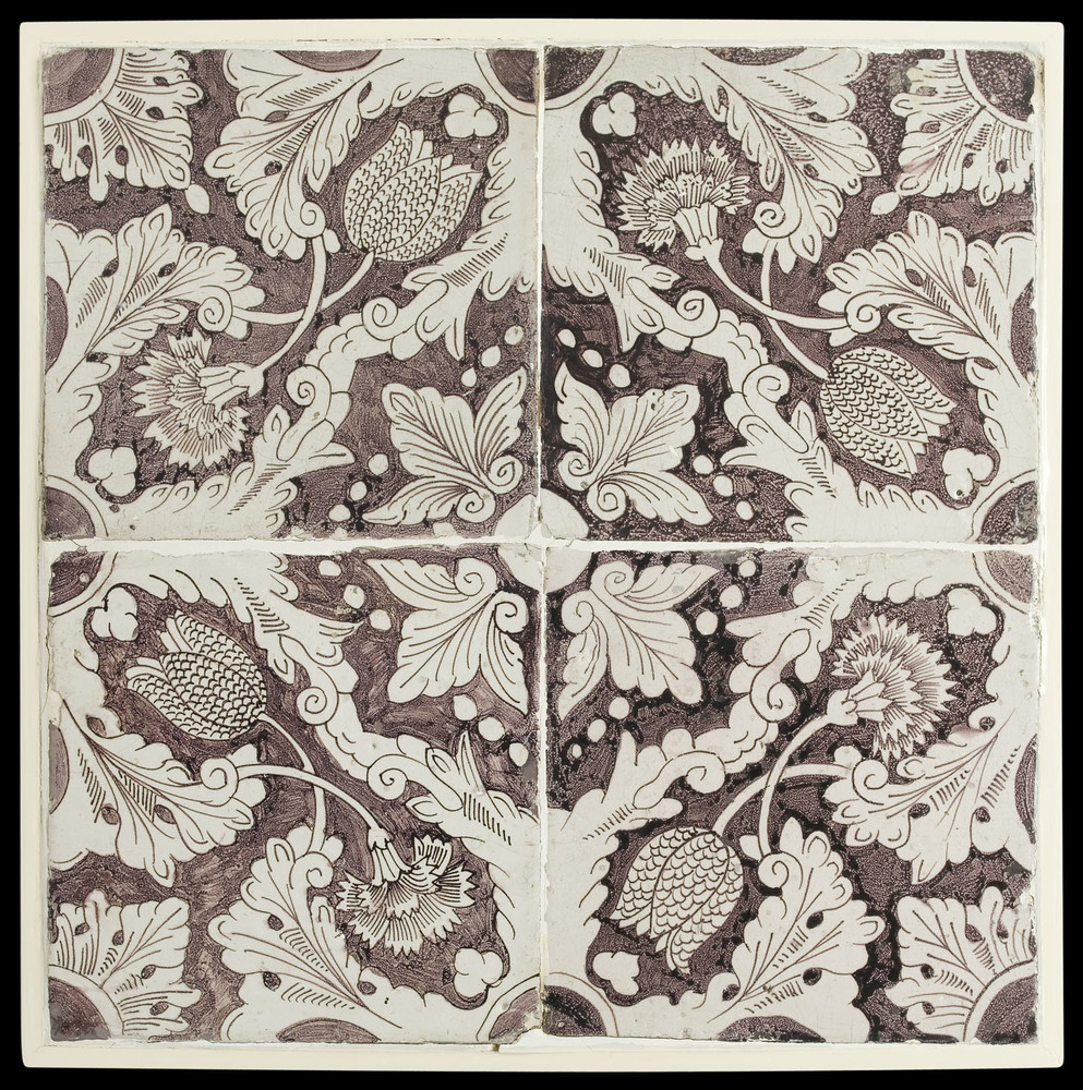 Tegelveld bestaande uit vier tegels van keramiek met...