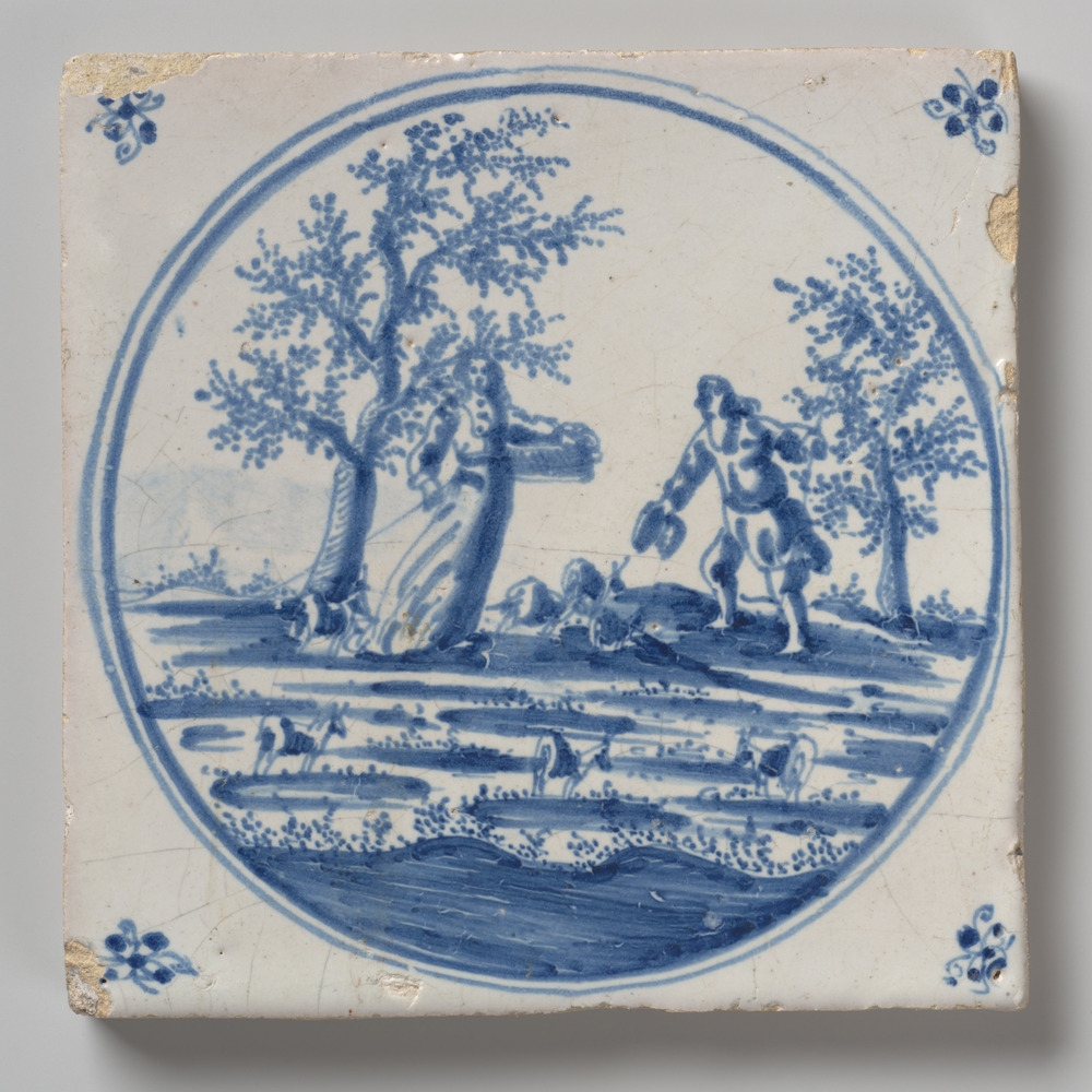 tegel van keramiek met tinglazuur, voorstellende: be...
